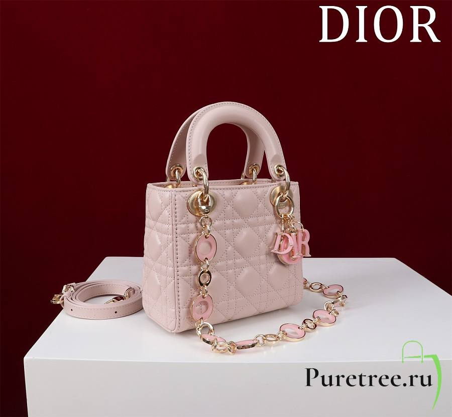DIOR | Lady Leather with Velvet In Pink Size 17*15*7cm