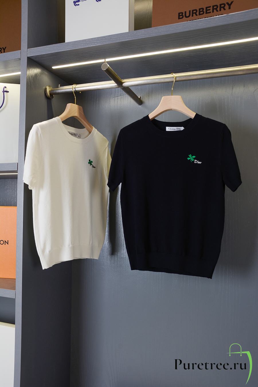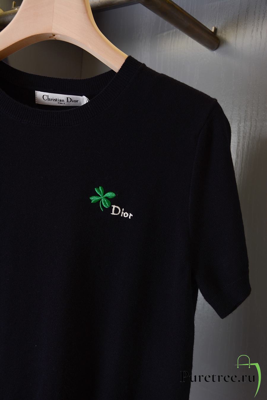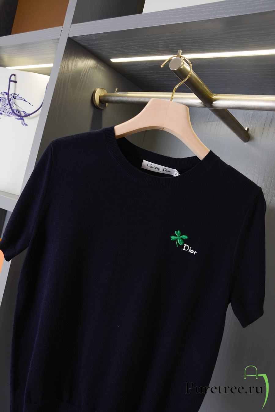 DIOR | Short-Sleeved Fitted Sweater Black Wool Knit with Green