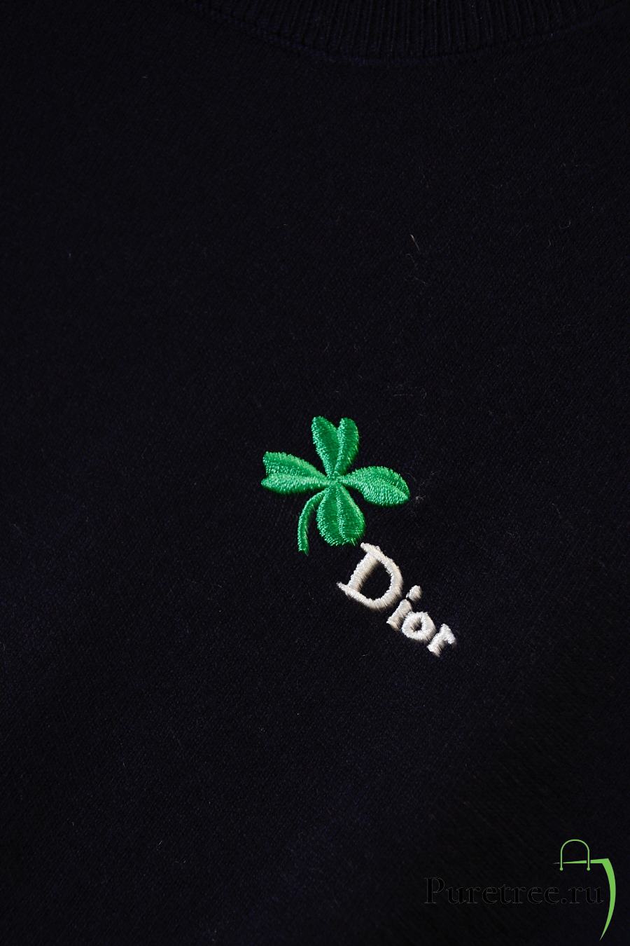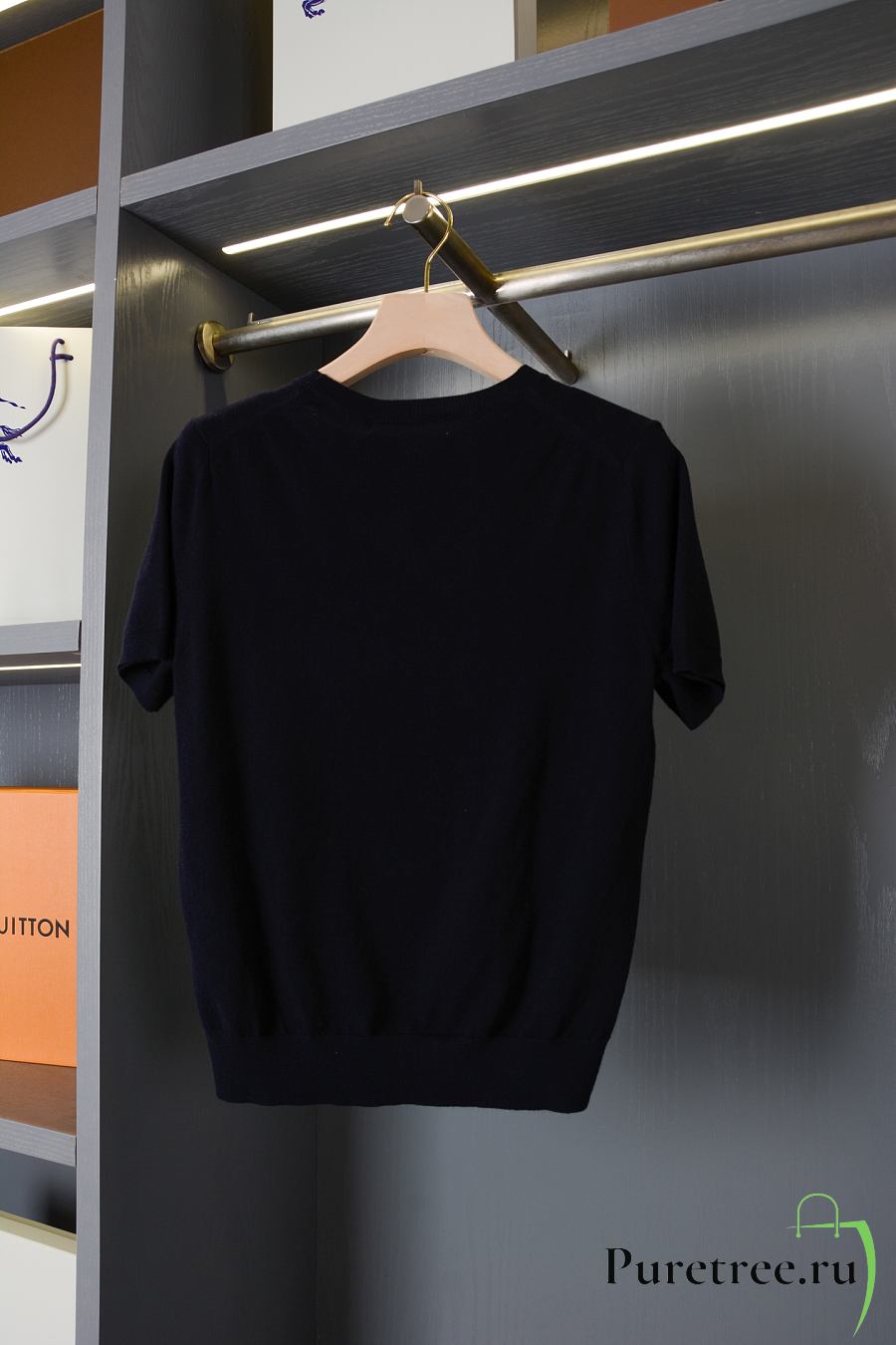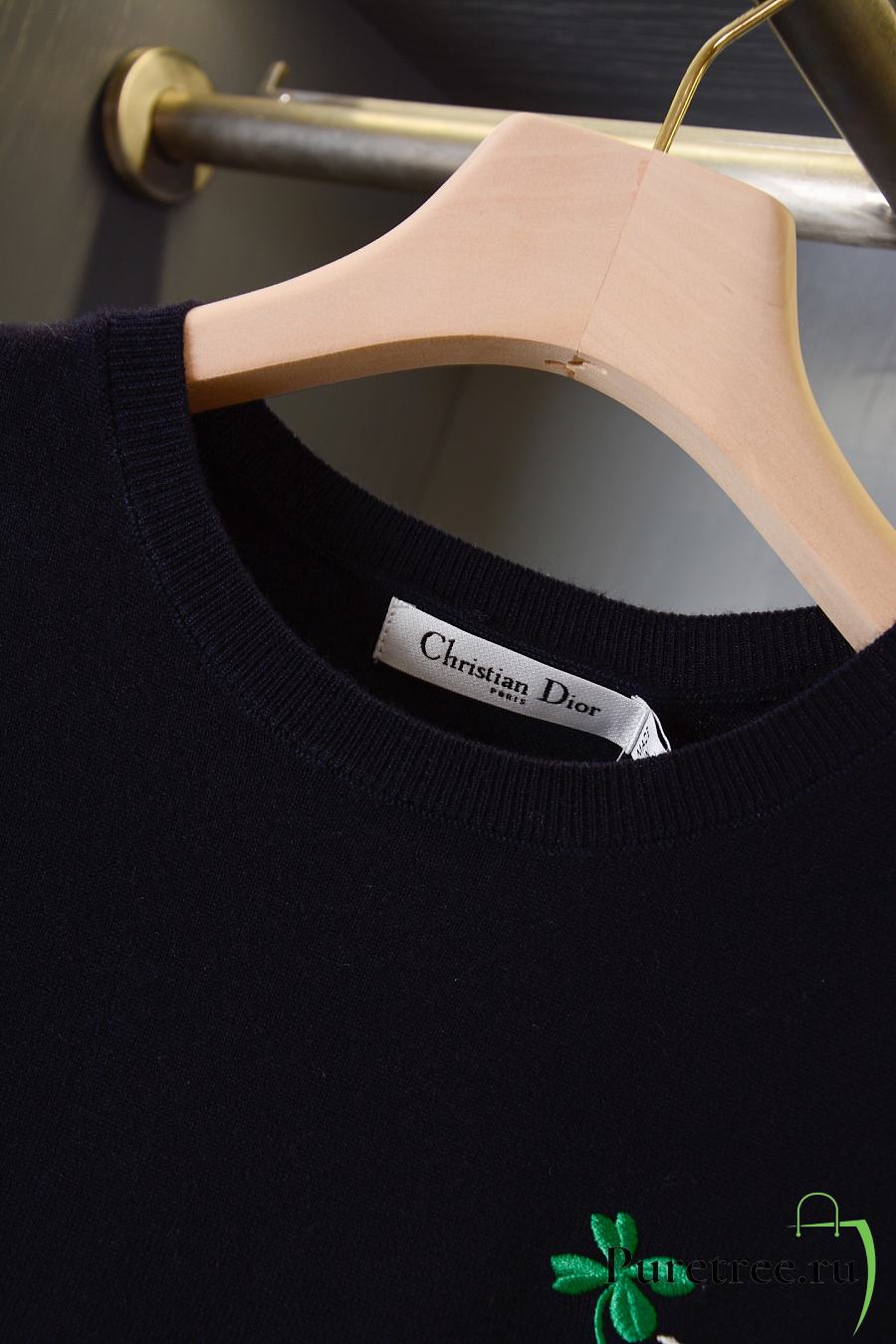 DIOR | Short-Sleeved Fitted Sweater Black Wool Knit with Green