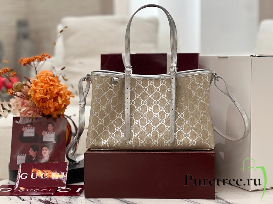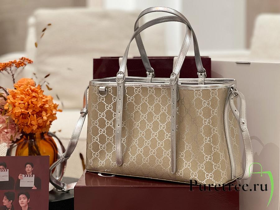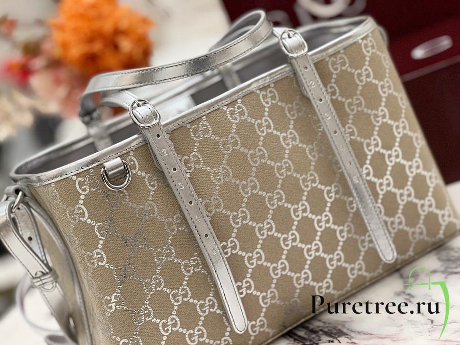 GUCCI | GG Emblem medium tote bag silver fabric