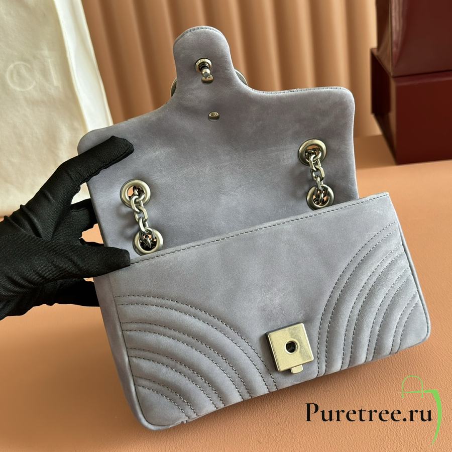 GUCCI | GG Marmont medium shoulder bag Dusty blue matelassé chevron suede