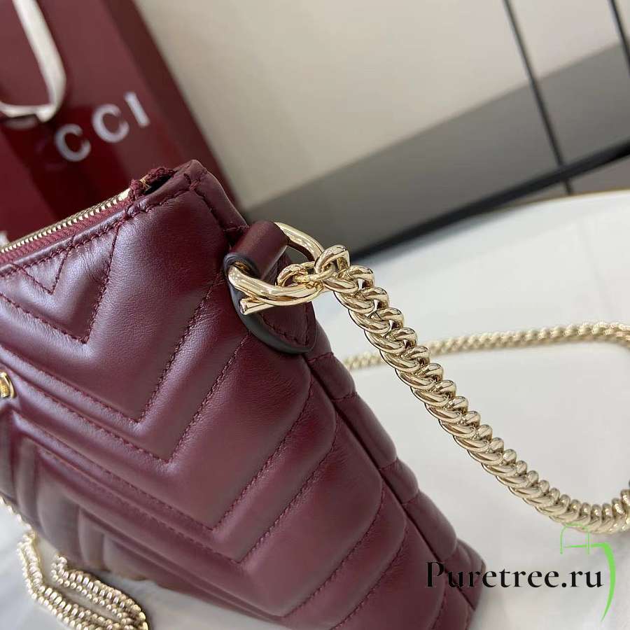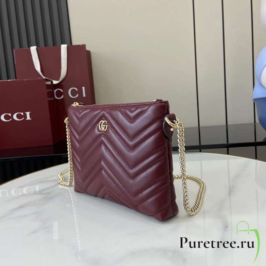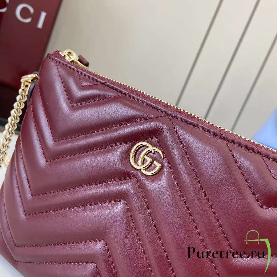 GUCCI | GG Marmont pochette with chain in Rosso Ancora red leather