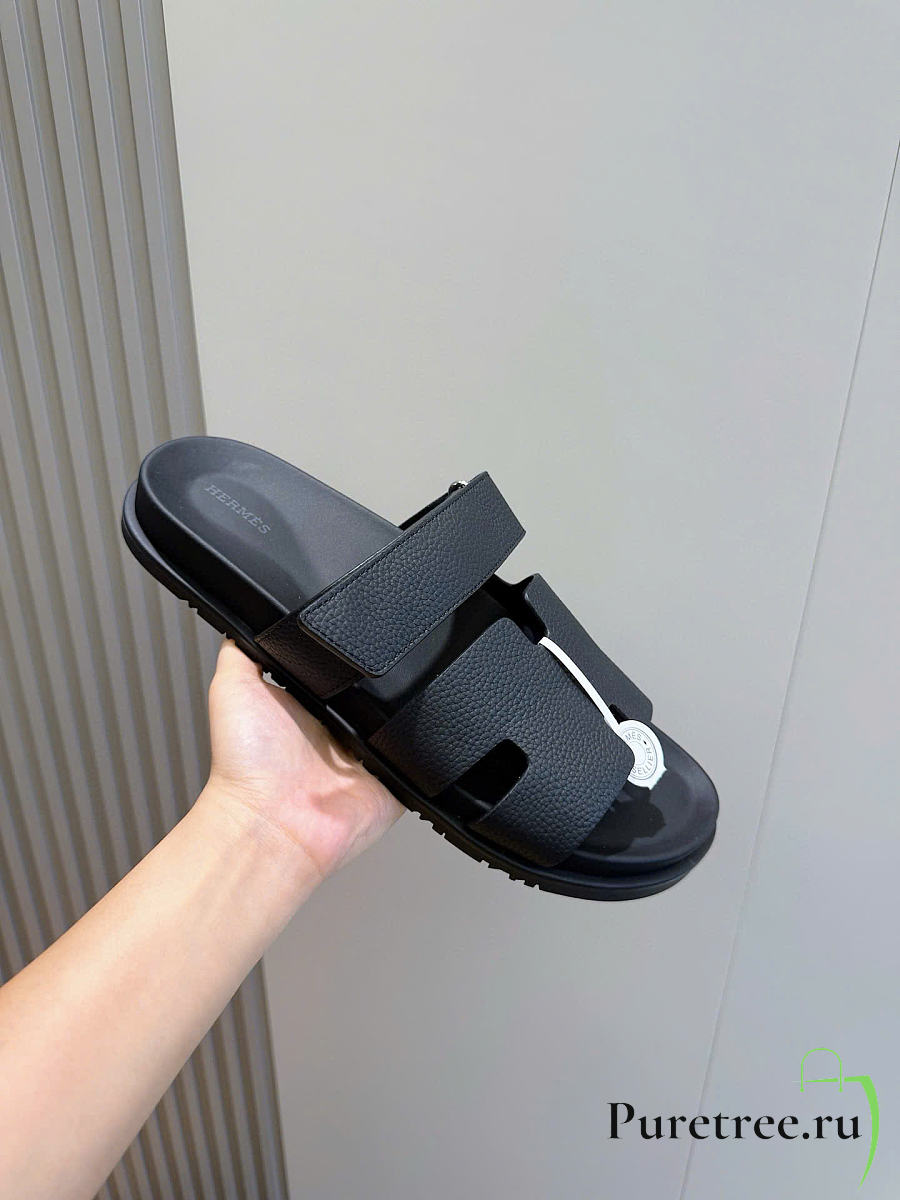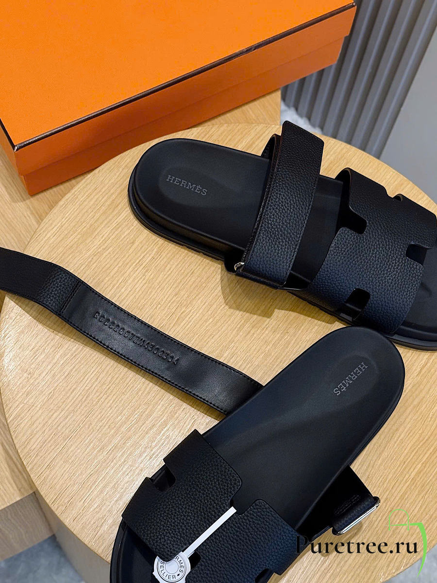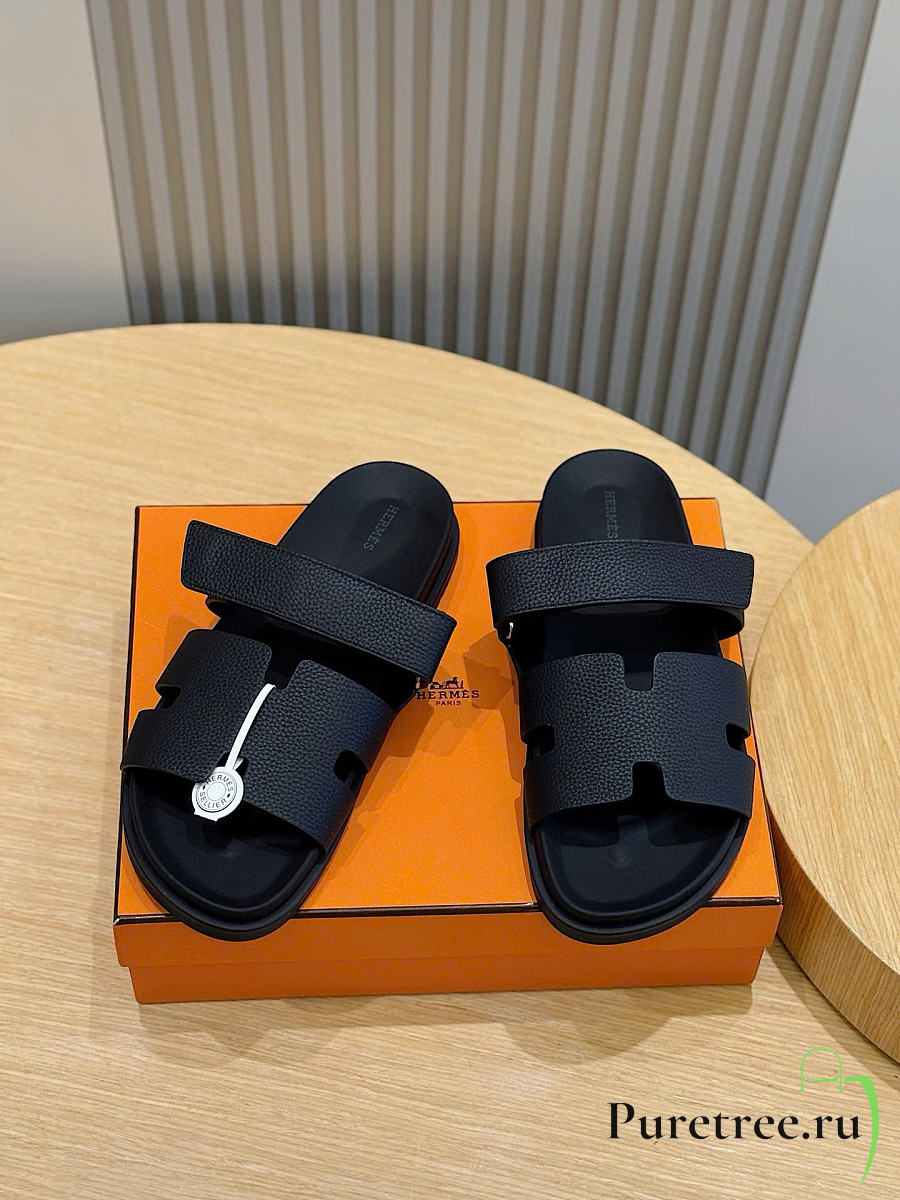 Hermès Izmir Black Leather Sandals