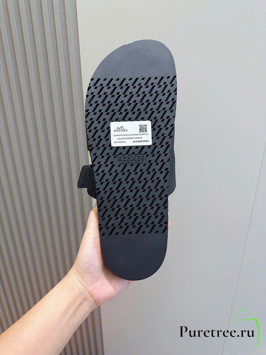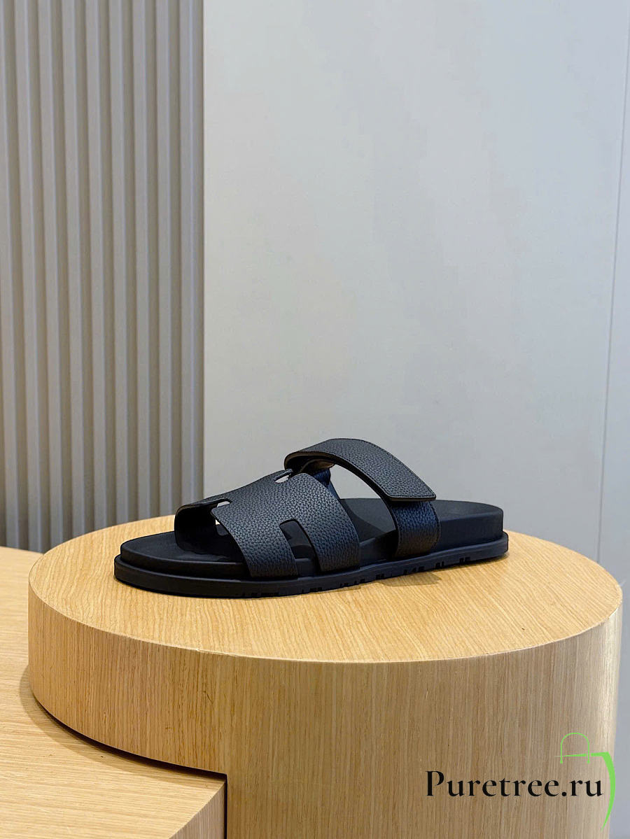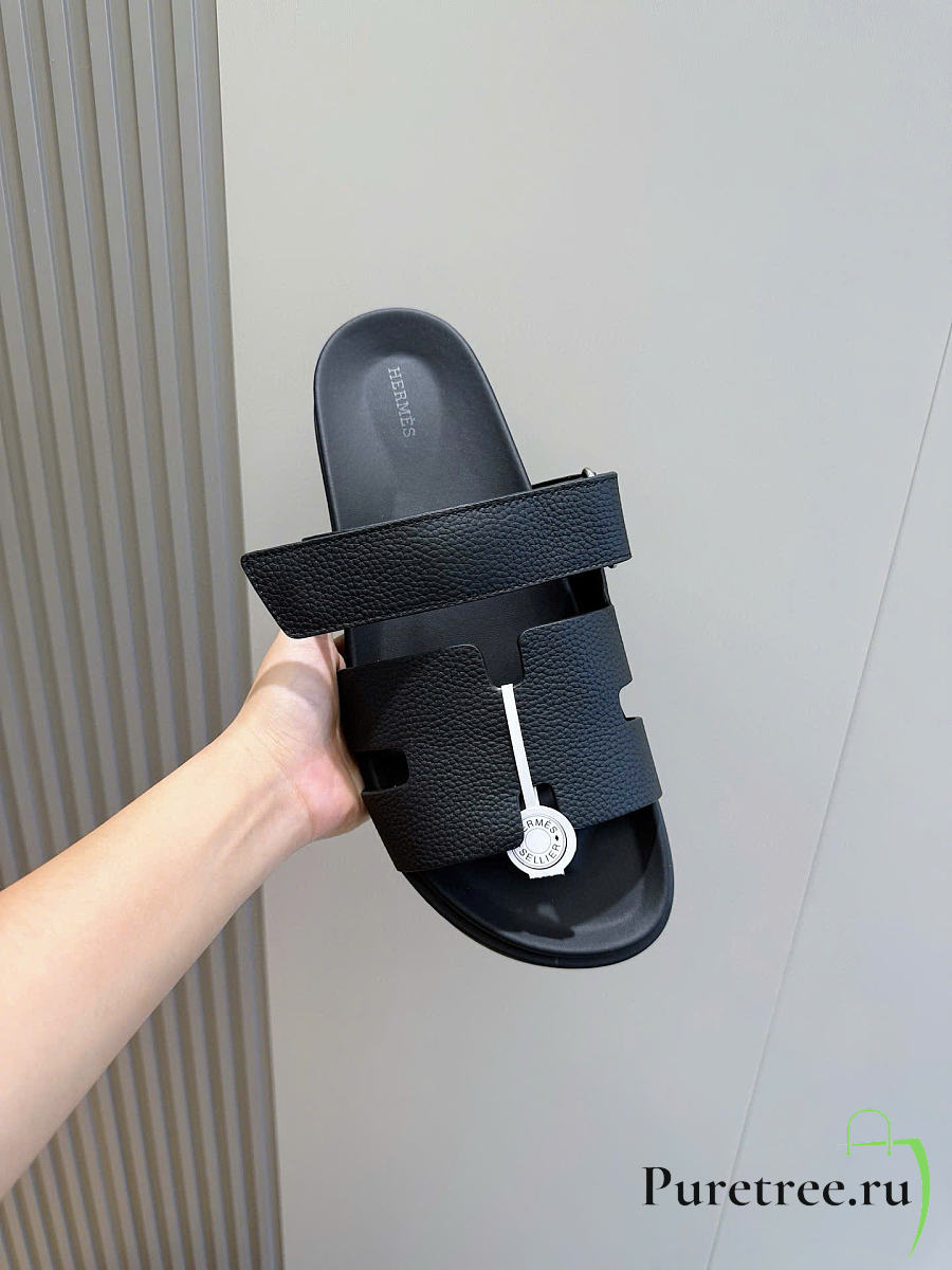 Hermès Izmir Black Leather Sandals