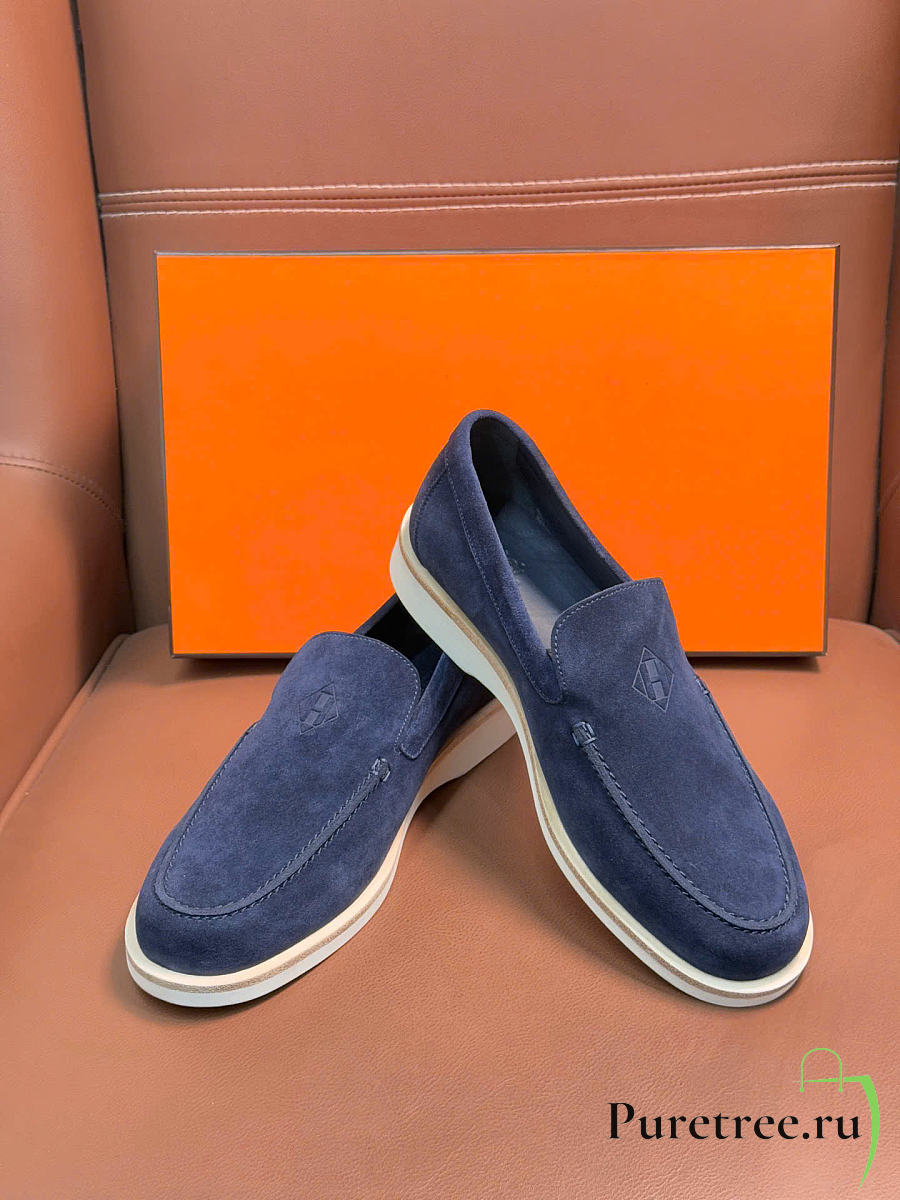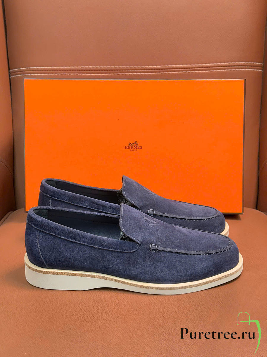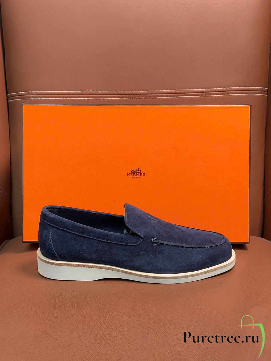 Hermès low loafers in suede combine sleek design Navy Blue Suede
