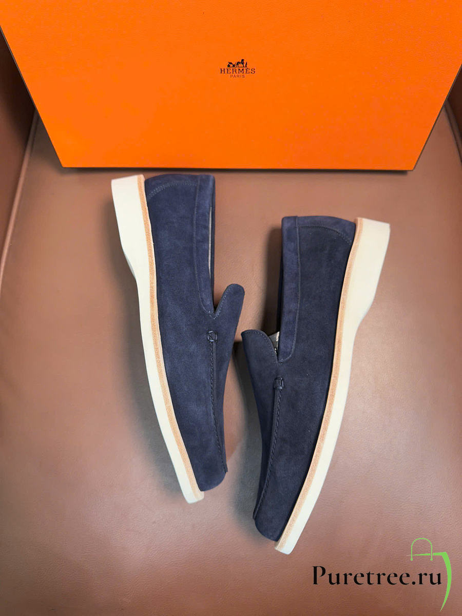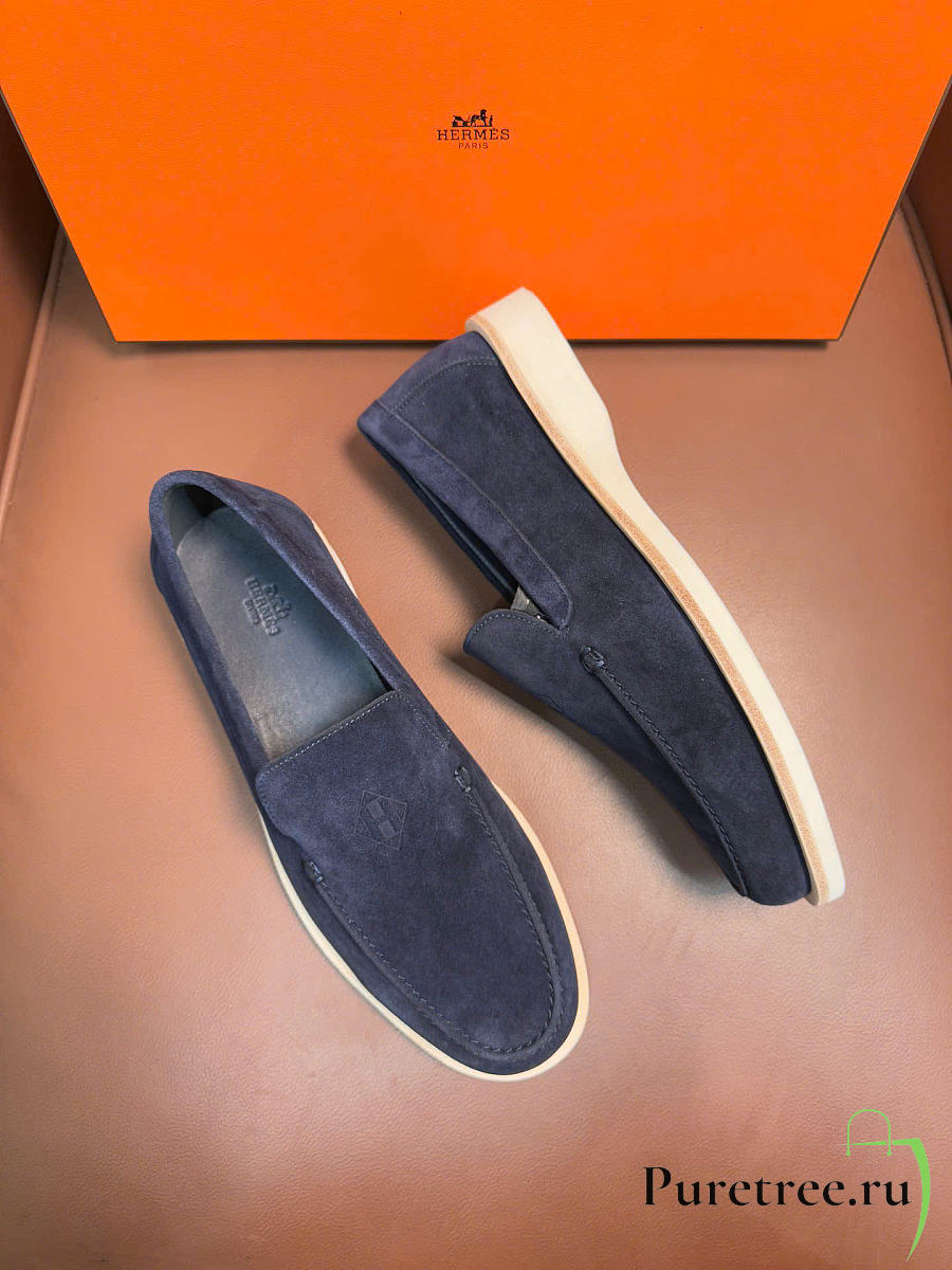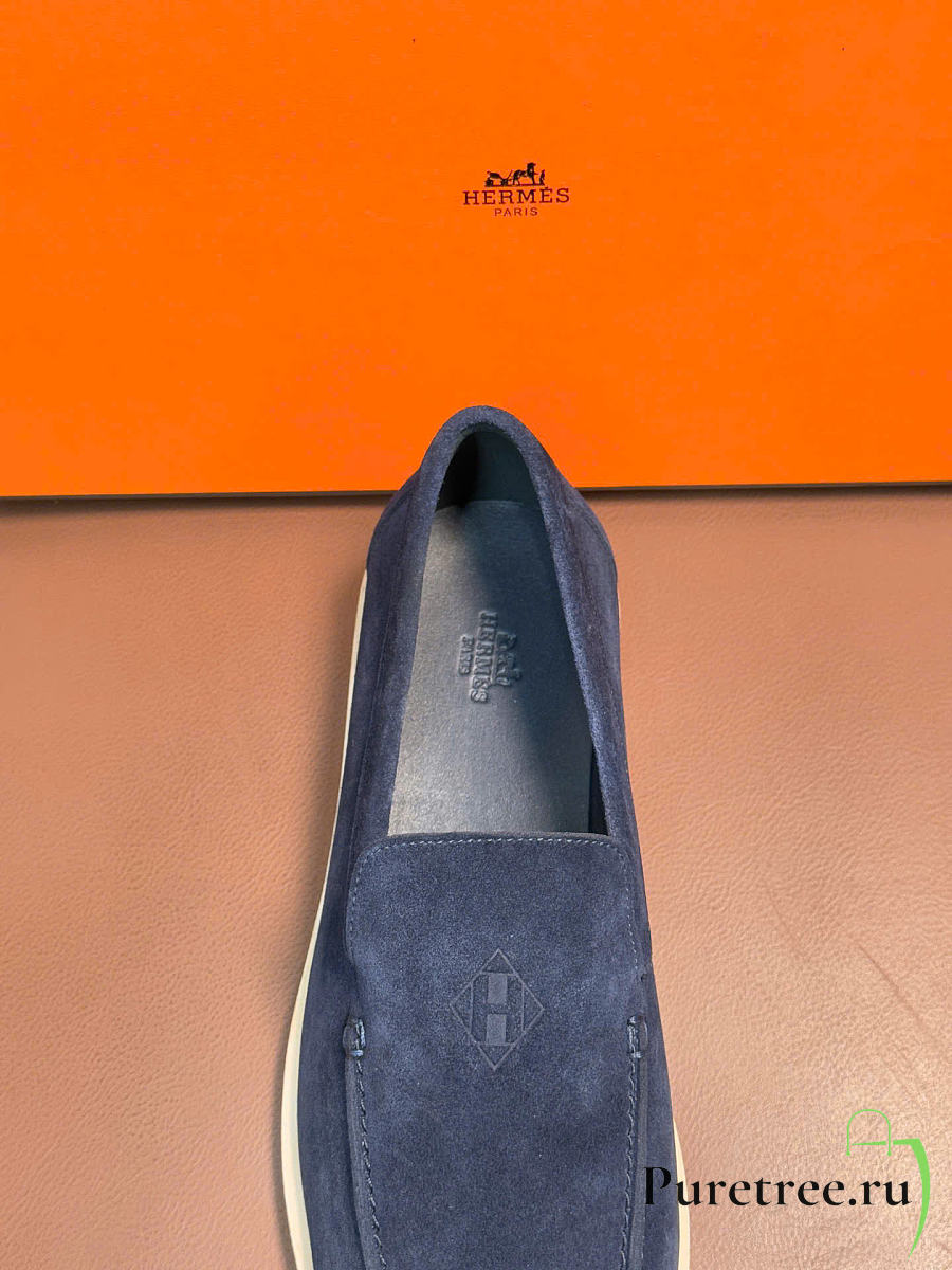 Hermès low loafers in suede combine sleek design Navy Blue Suede