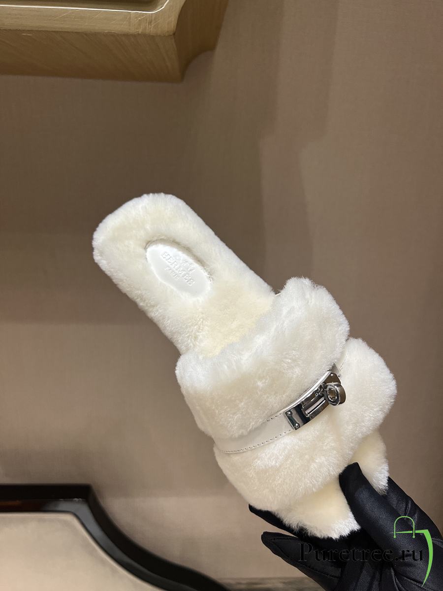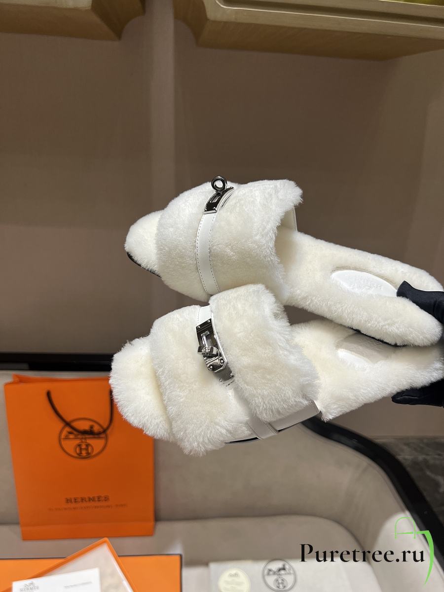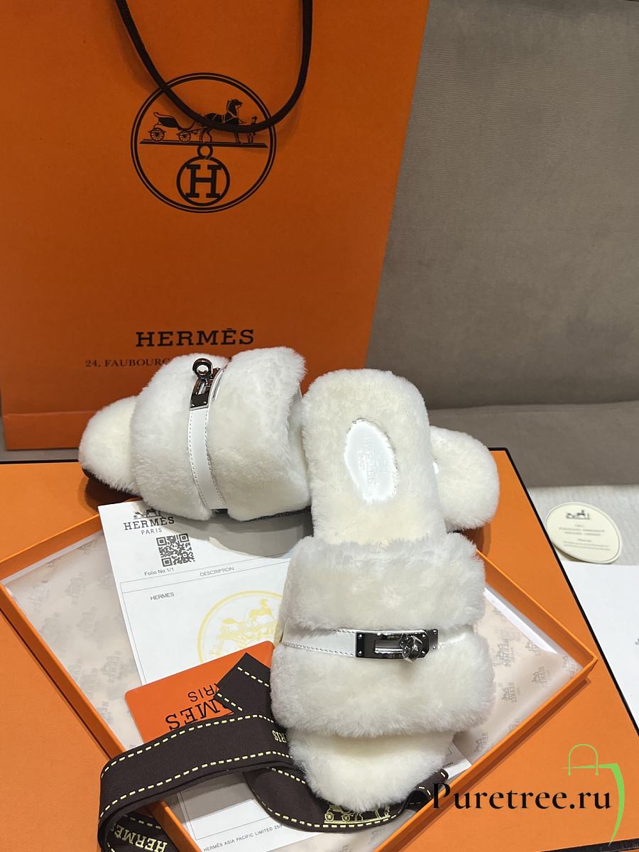 HERMES | Furry Flat Slippers 05