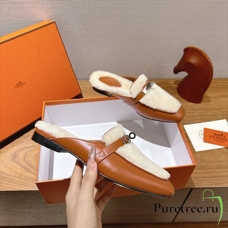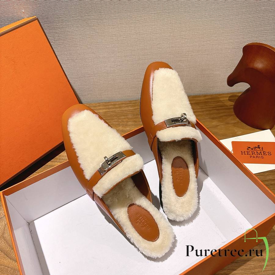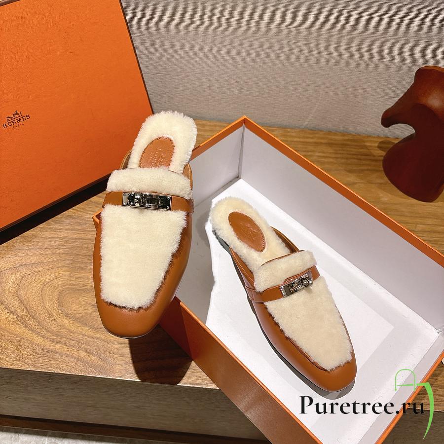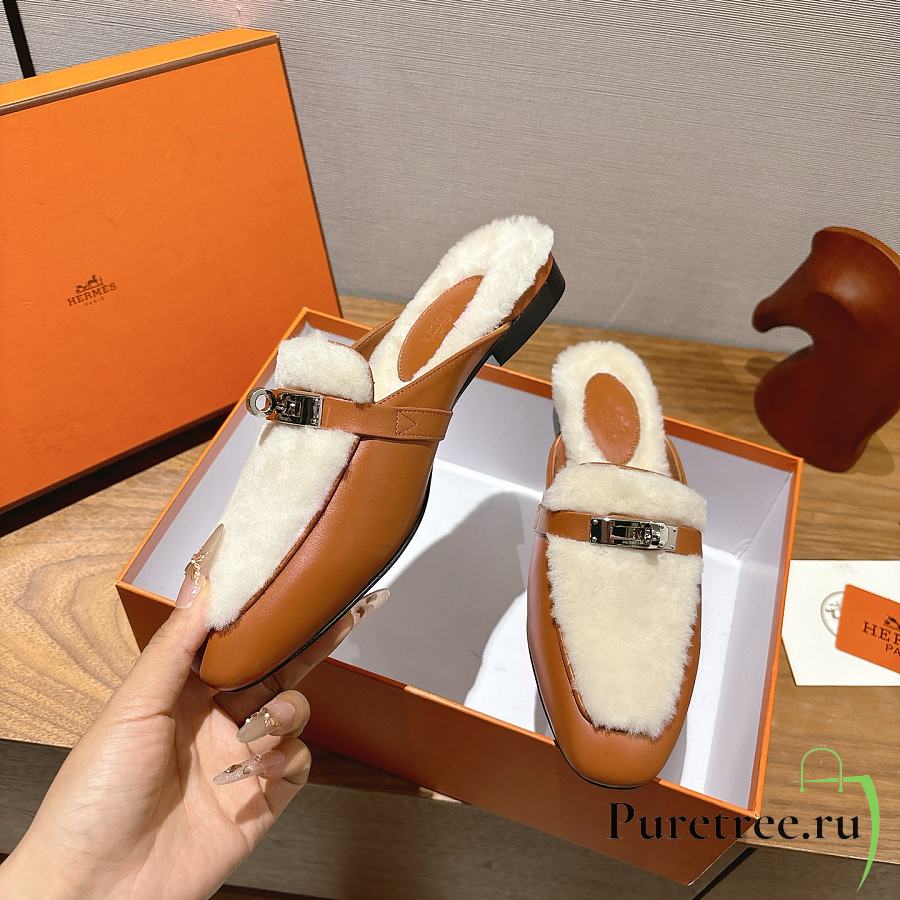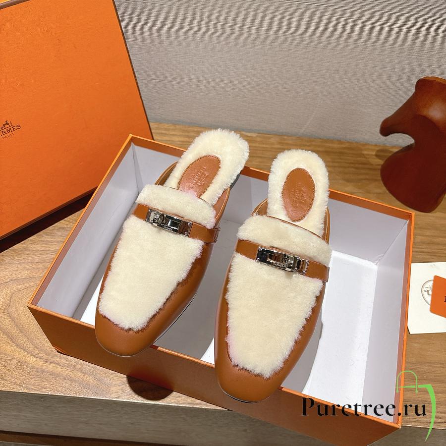 HERMES | H-House Wool Mules with Classic Kelly Buckle Brown