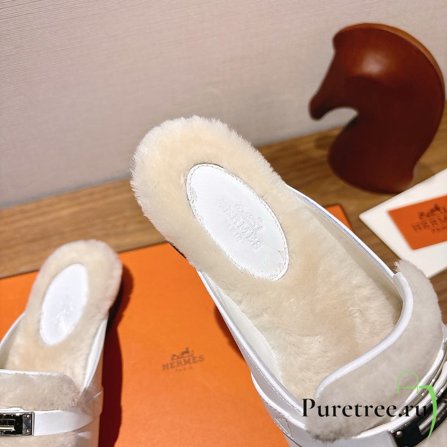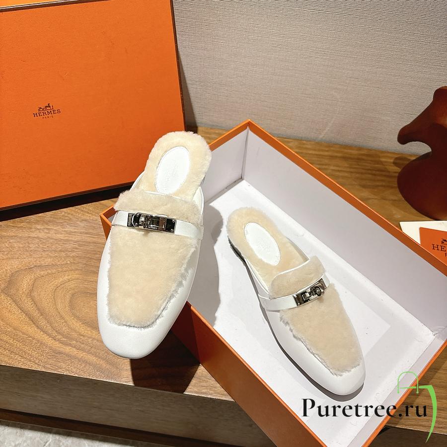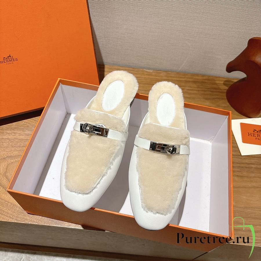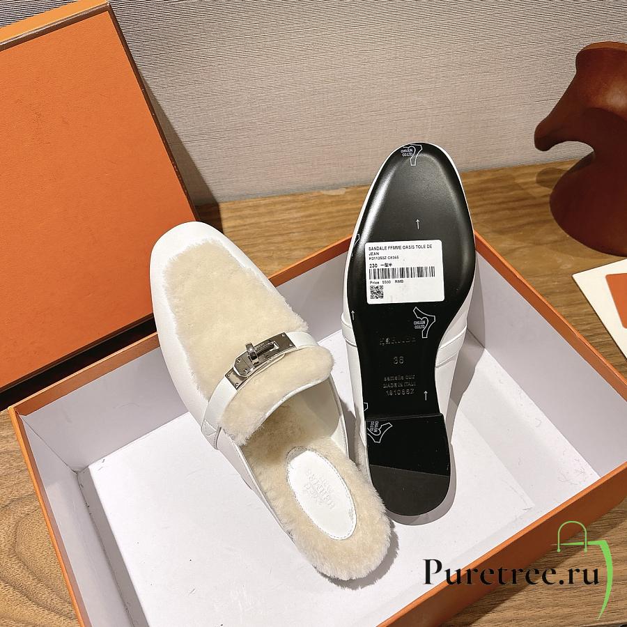 HERMES | H-House Wool Mules with Classic Kelly Buckle White