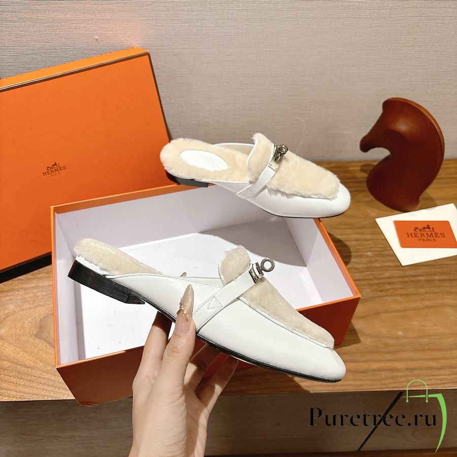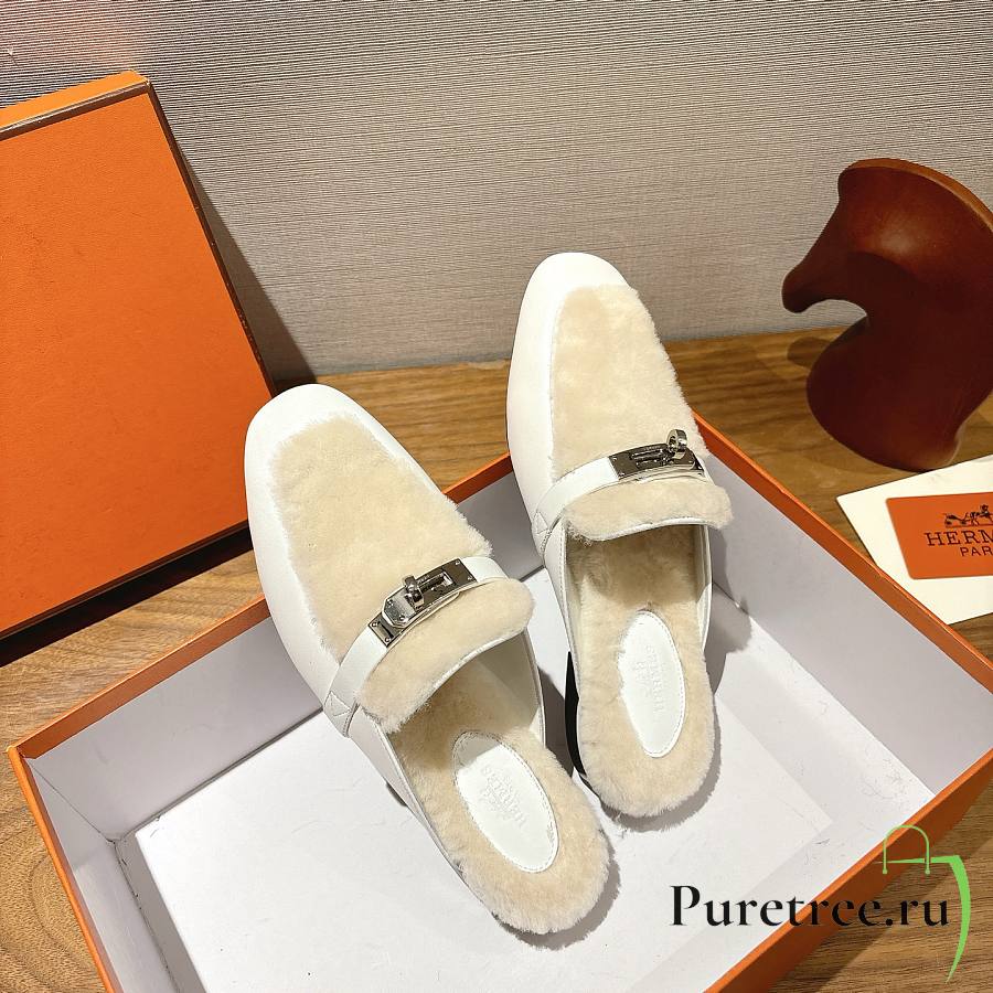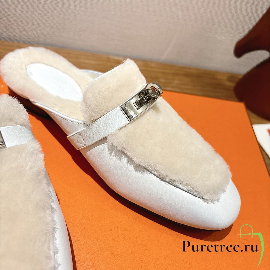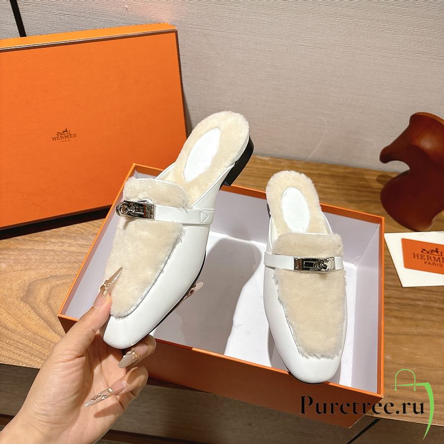 HERMES | H-House Wool Mules with Classic Kelly Buckle White