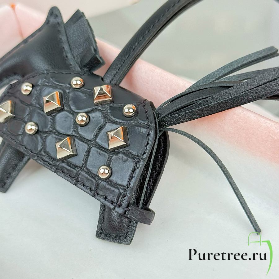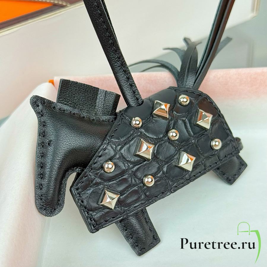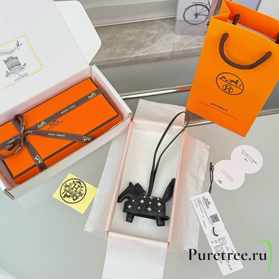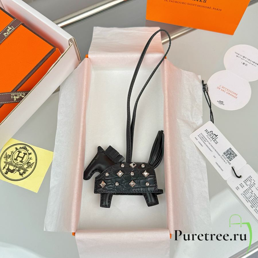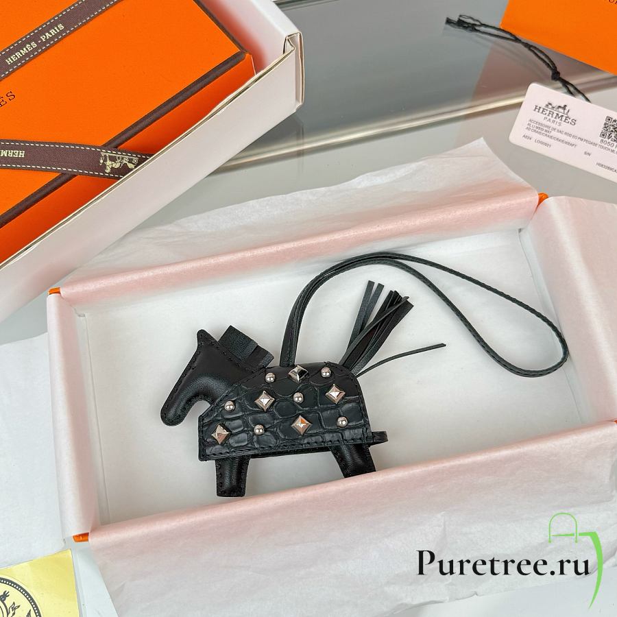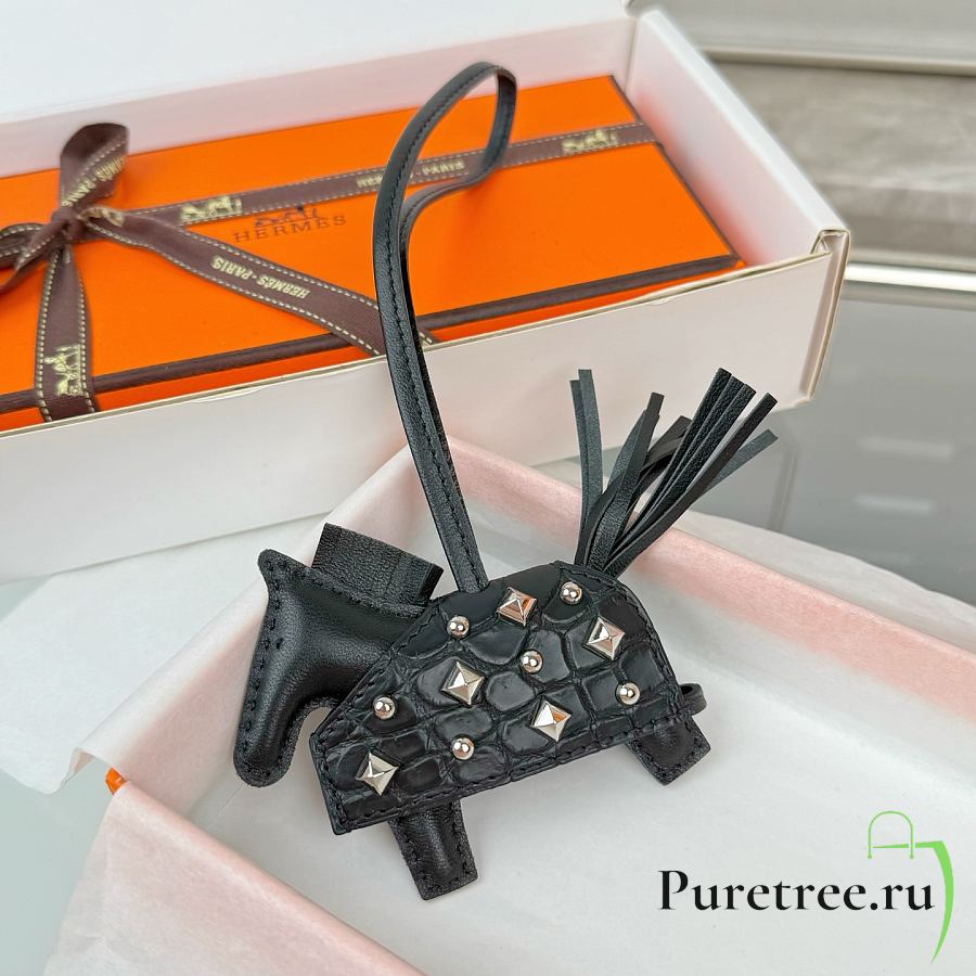 HERMES Rodeo Robeo Coeur Pony Bag Keychain Black Silver