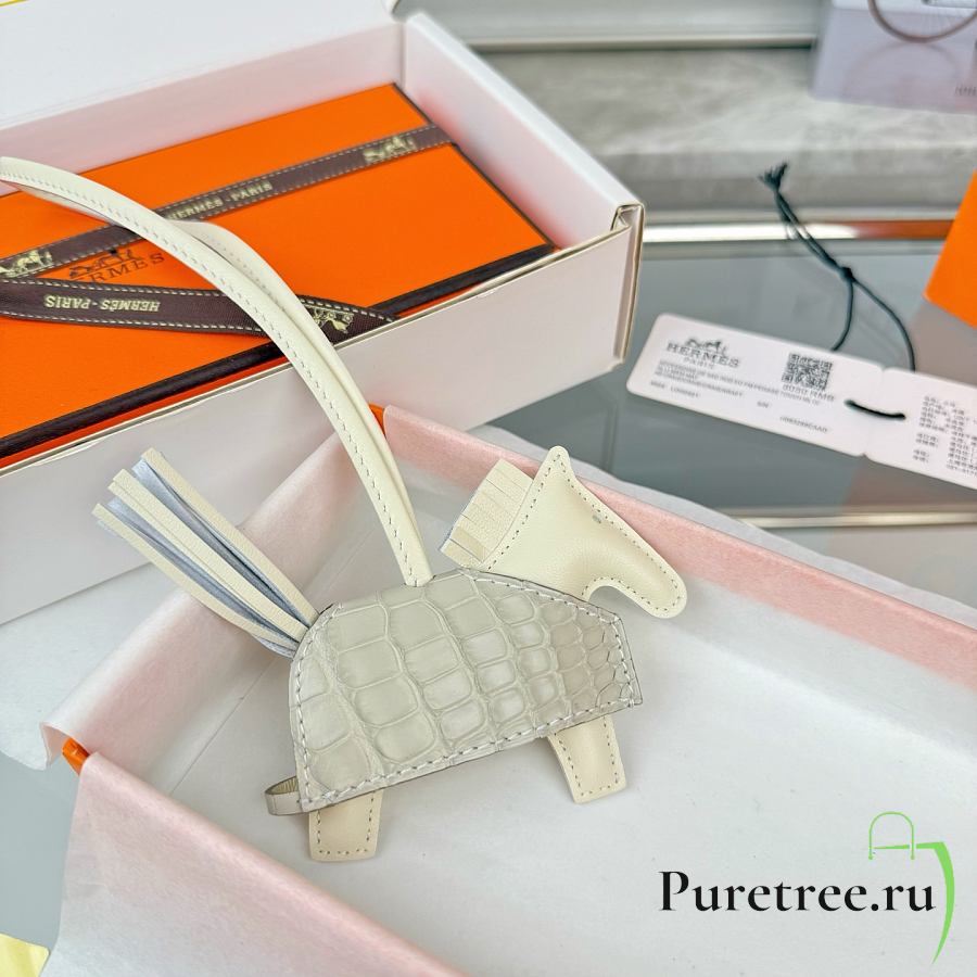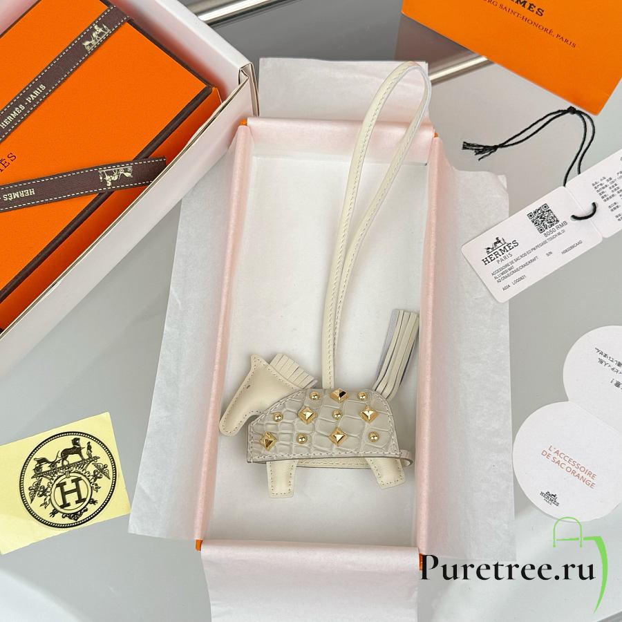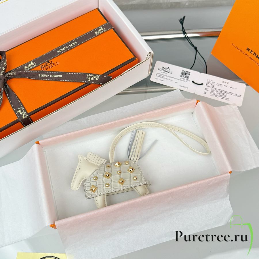 HERMES Rodeo Robeo Coeur Pony Bag Keychain White Gold