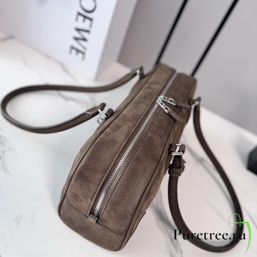 LOEWE | Amazona 31 debossed nubuck shoulder bag dark brown