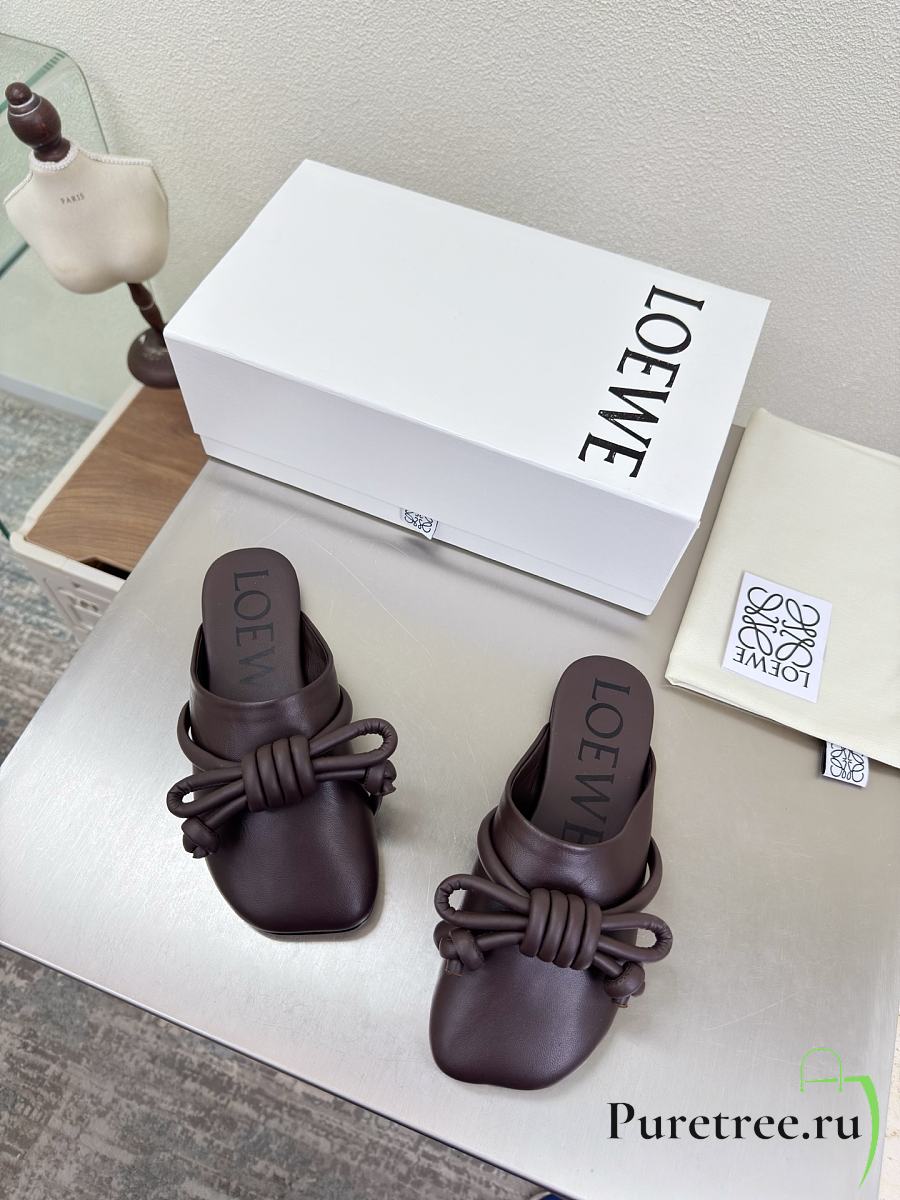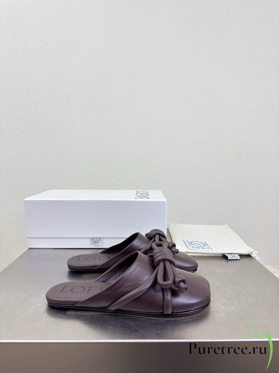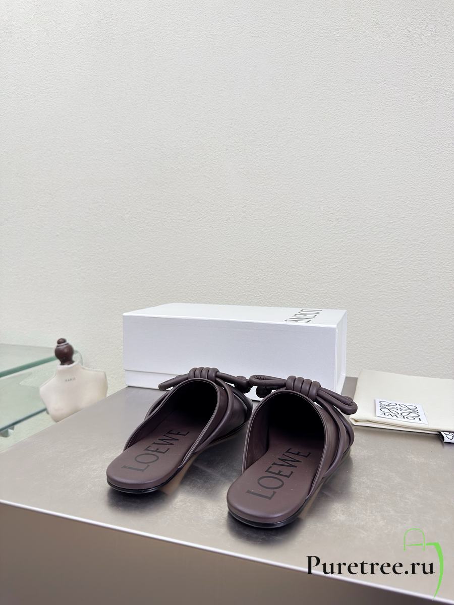 LOEWE | Flamenco Knot Mules Dark Chocolate Brown Leather