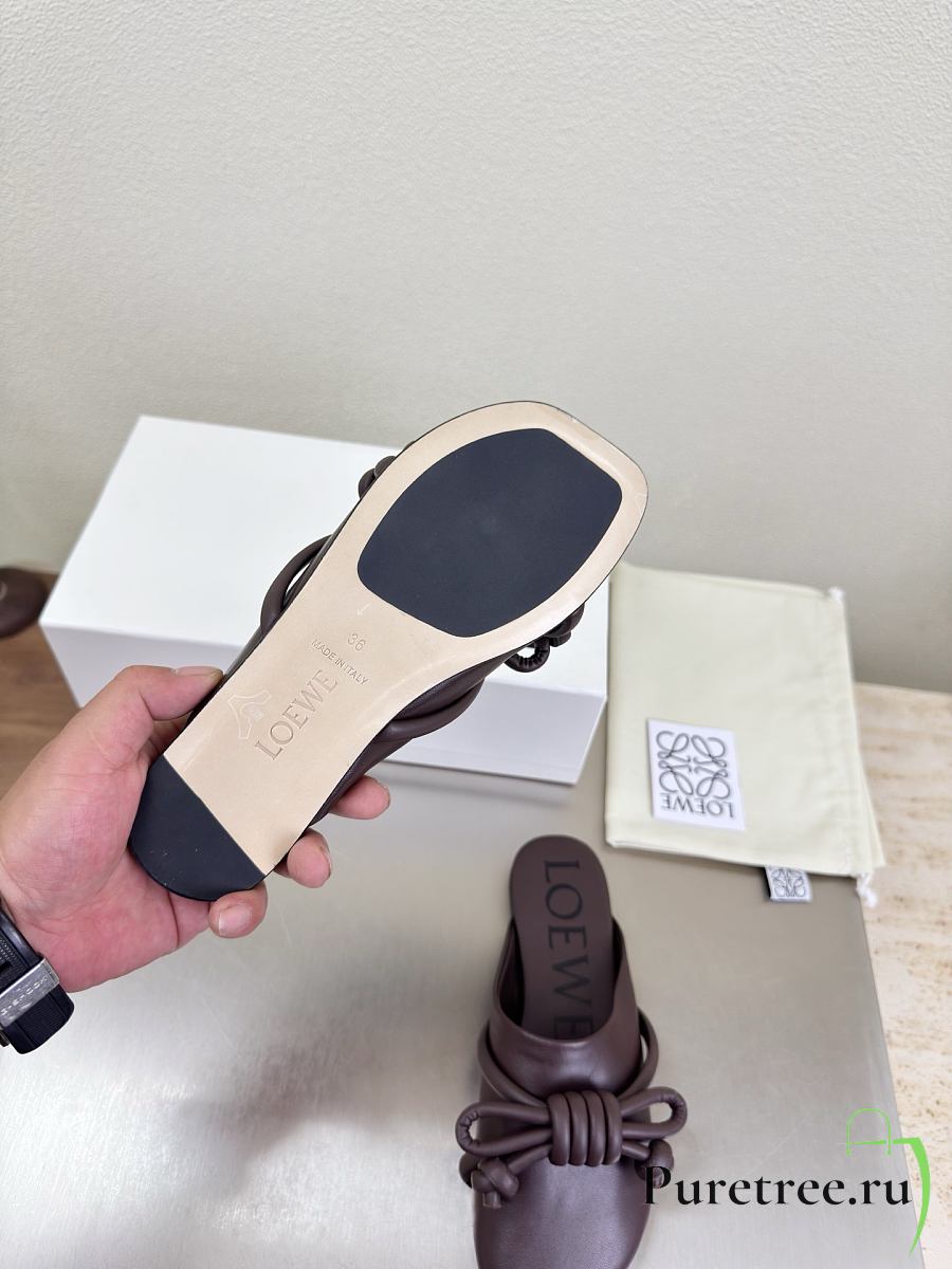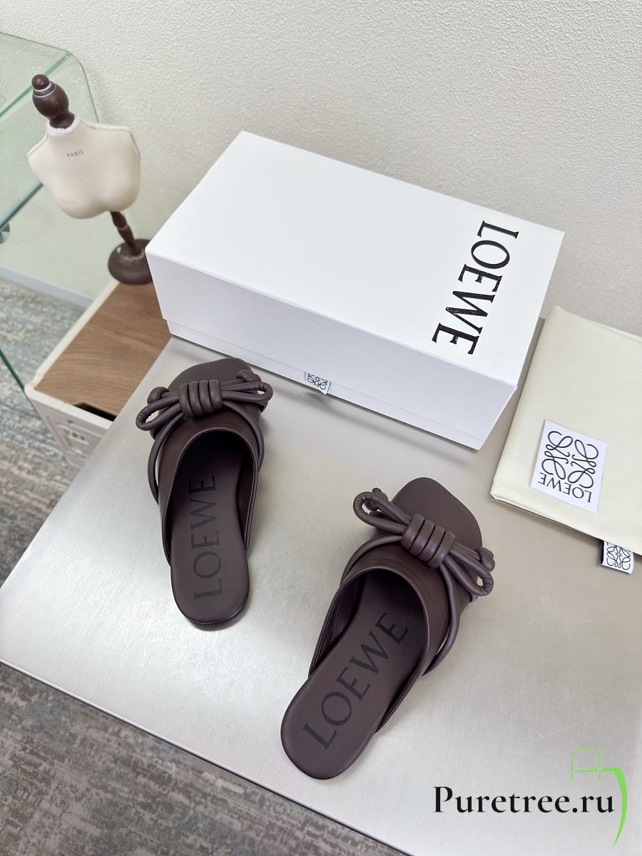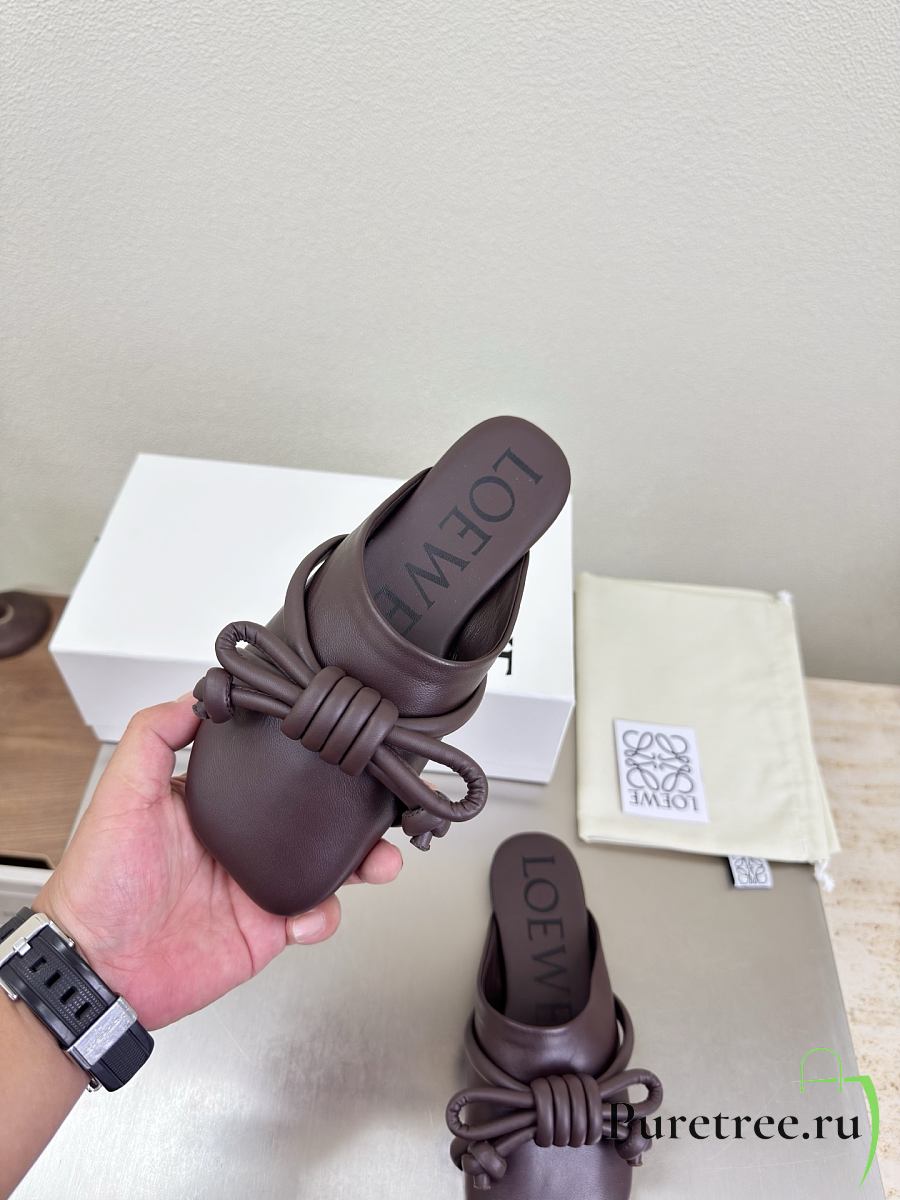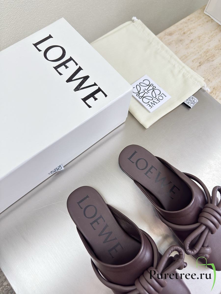 LOEWE | Flamenco Knot Mules Dark Chocolate Brown Leather