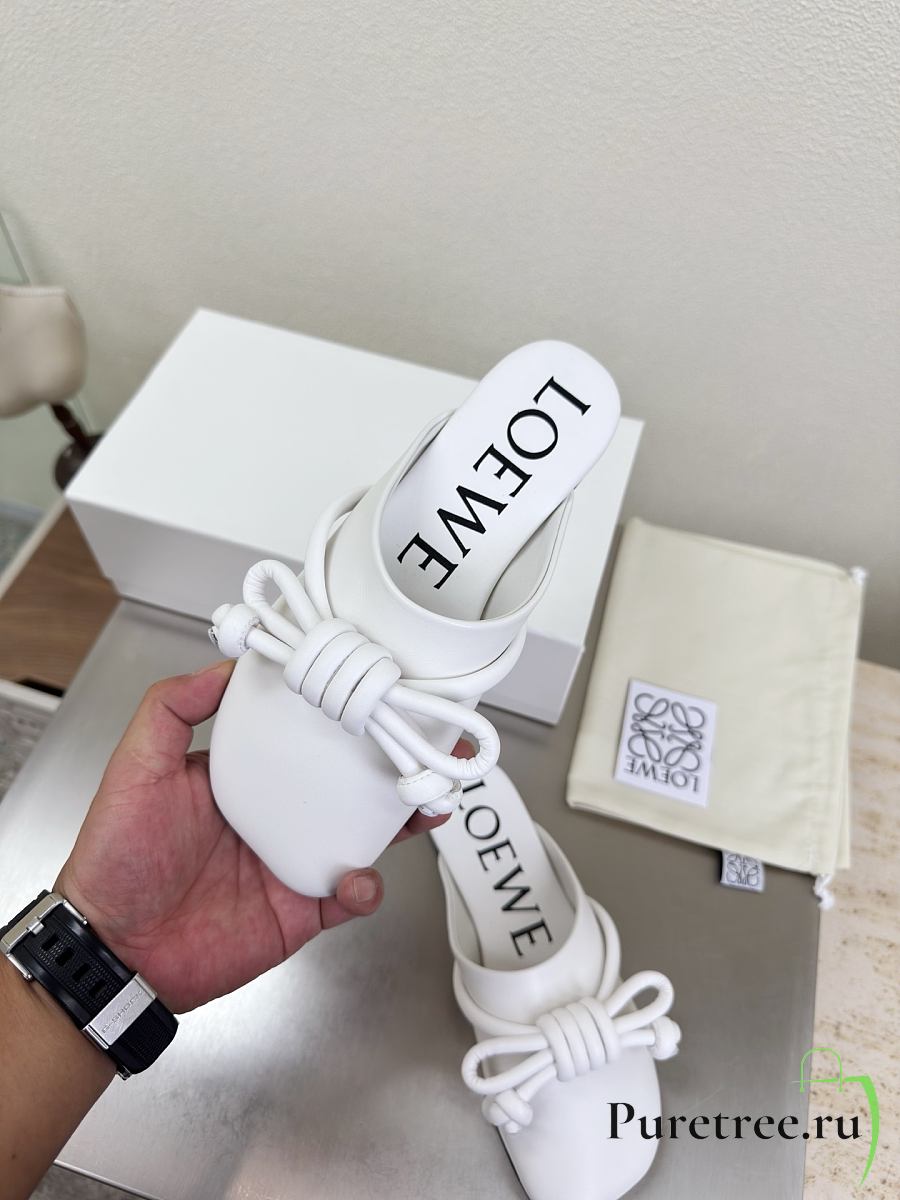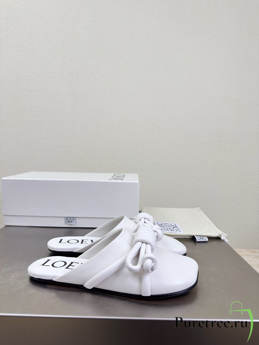 LOEWE | Flamenco Knot Mules White Leather