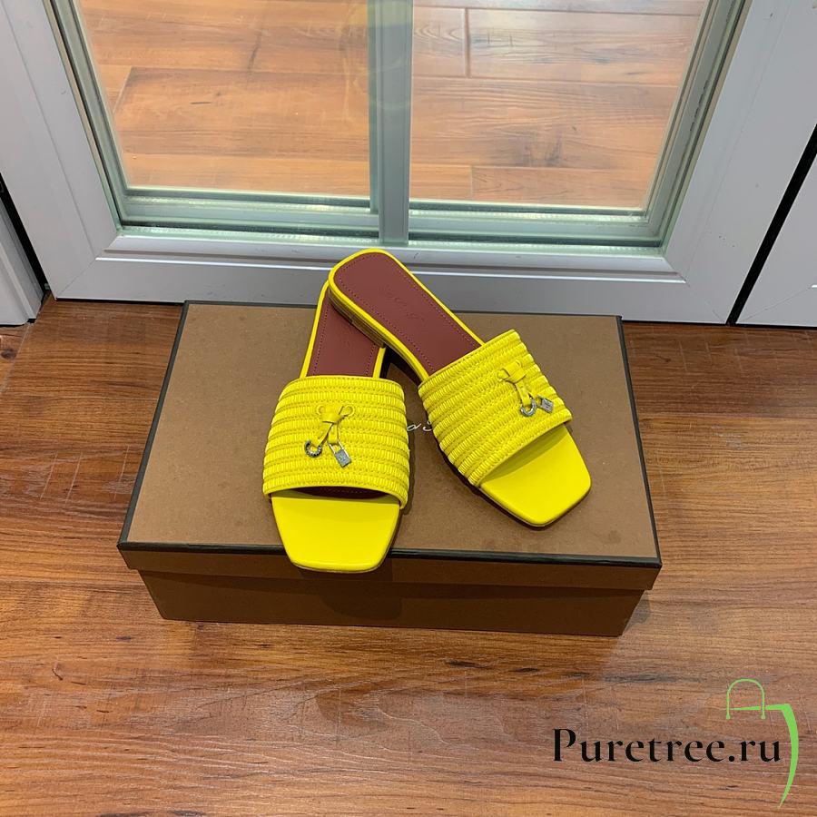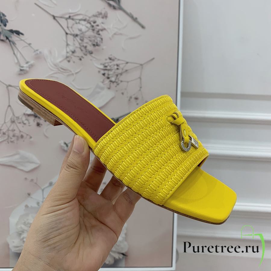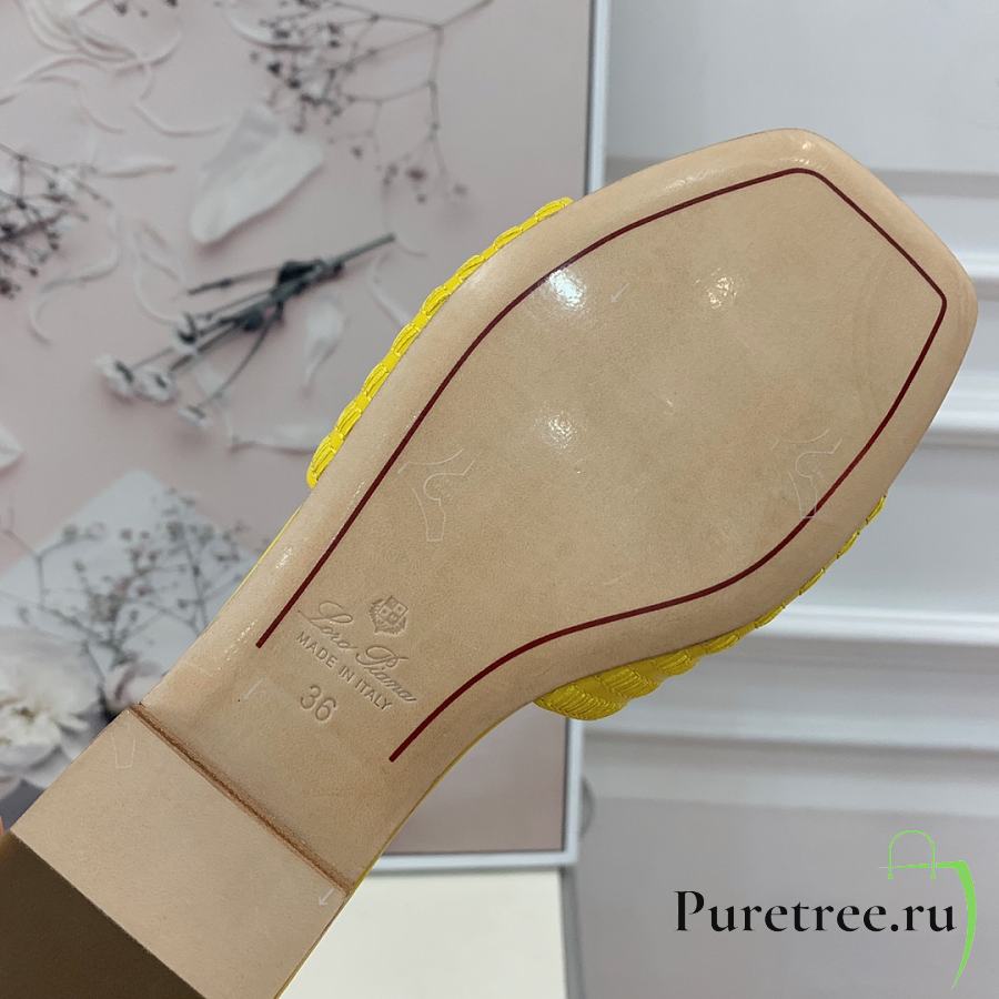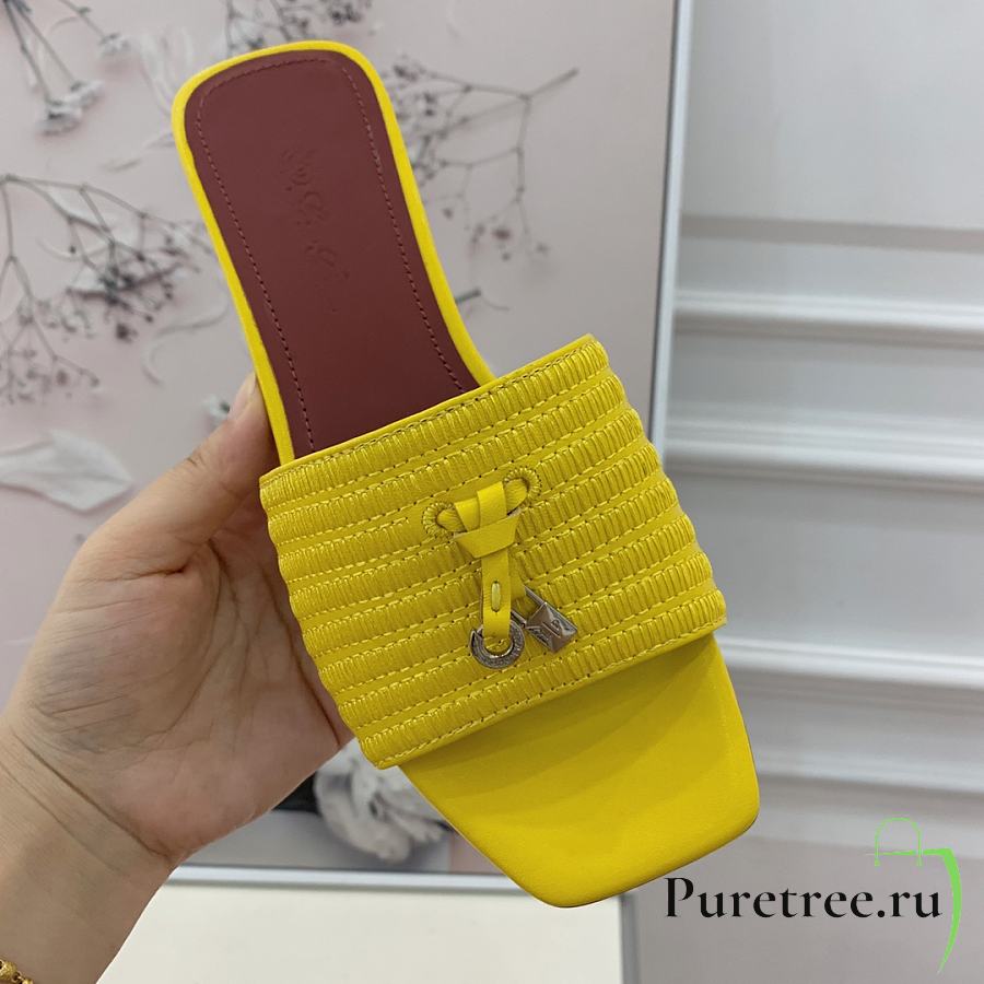 Loro Piana Womens Woven Stripe Cowhide Loafers Sandals Yellow