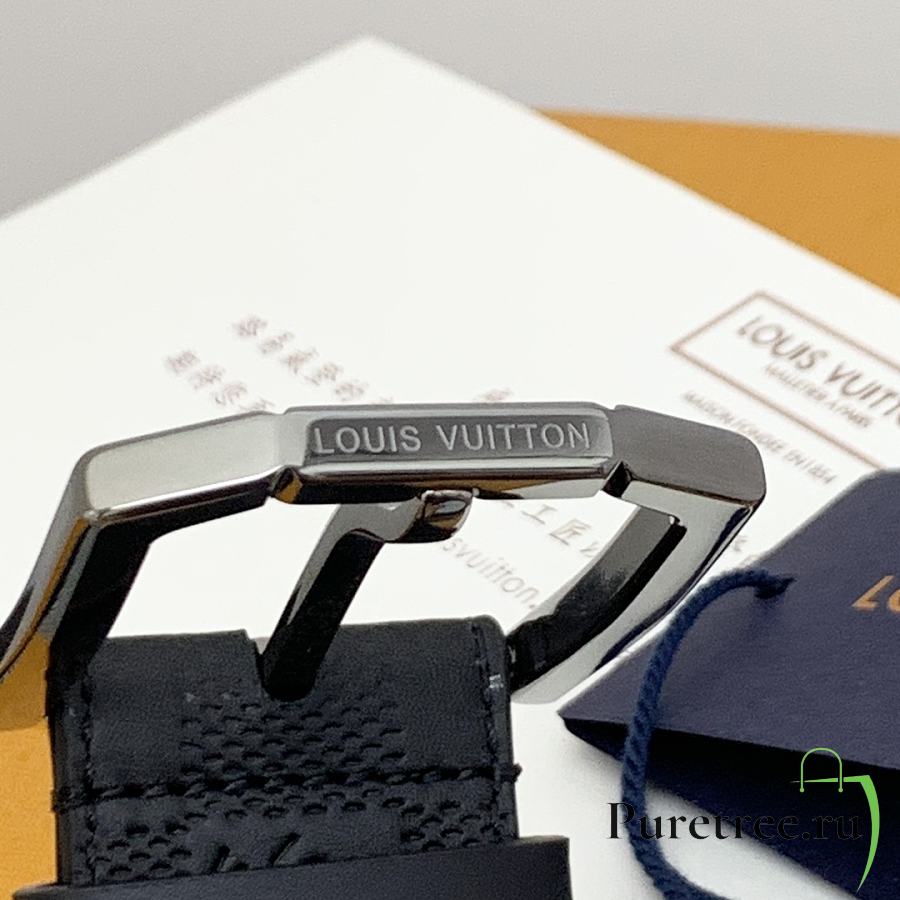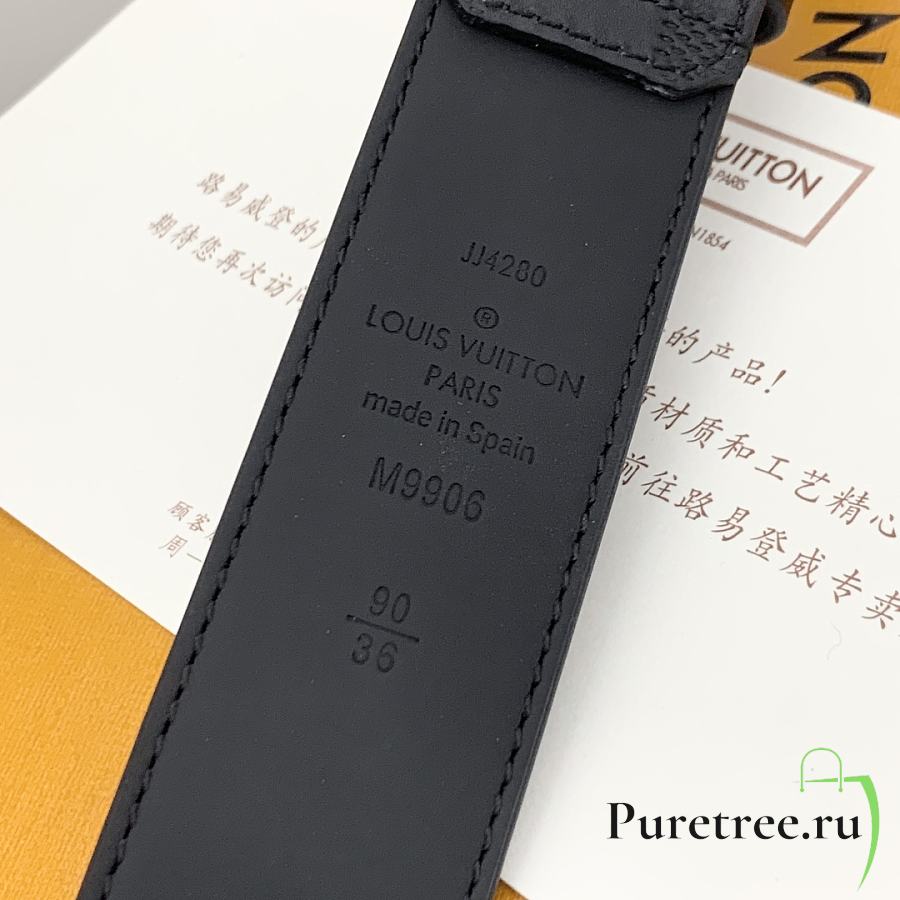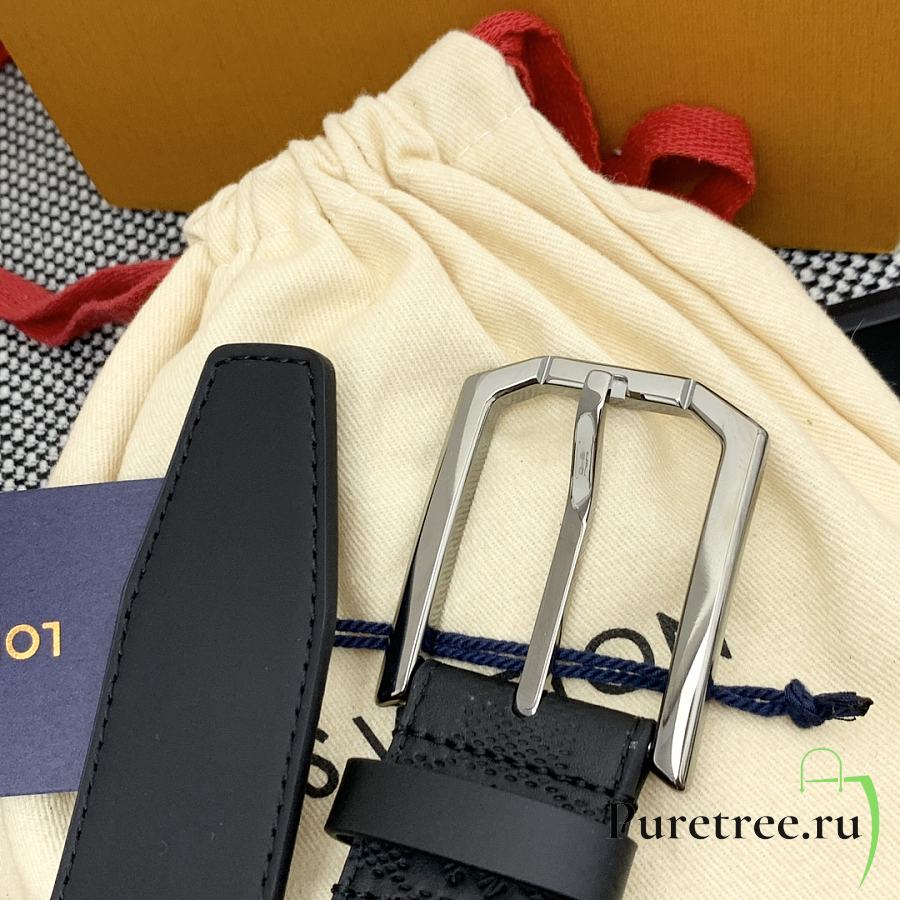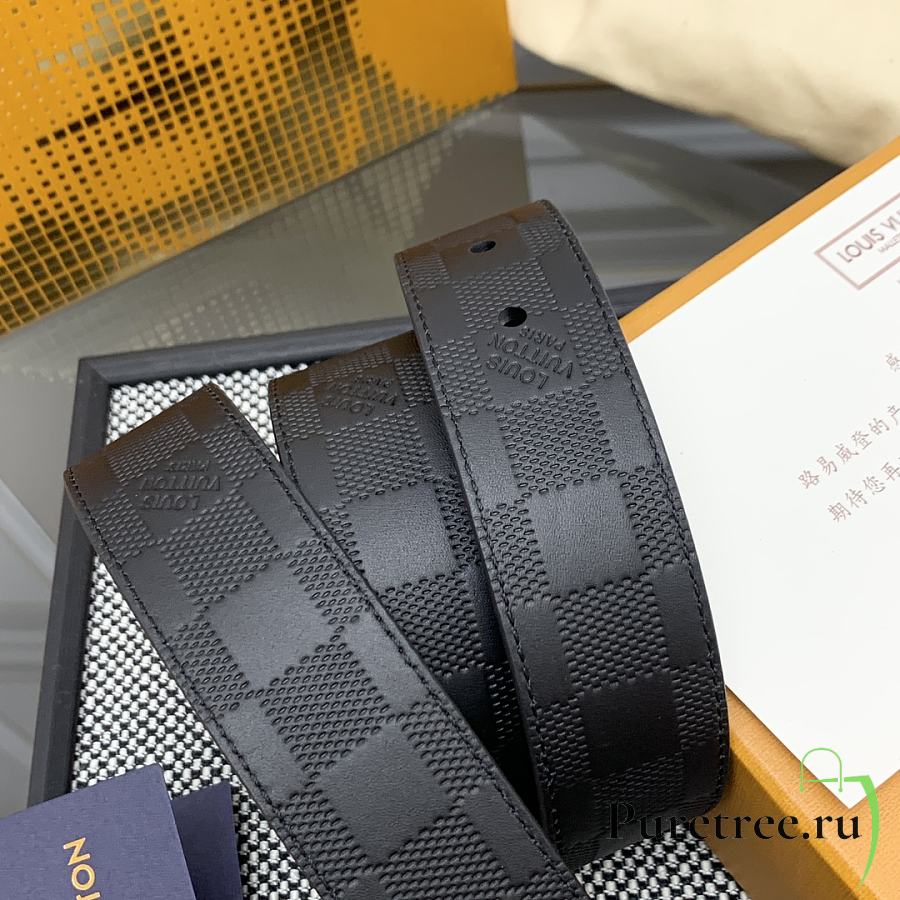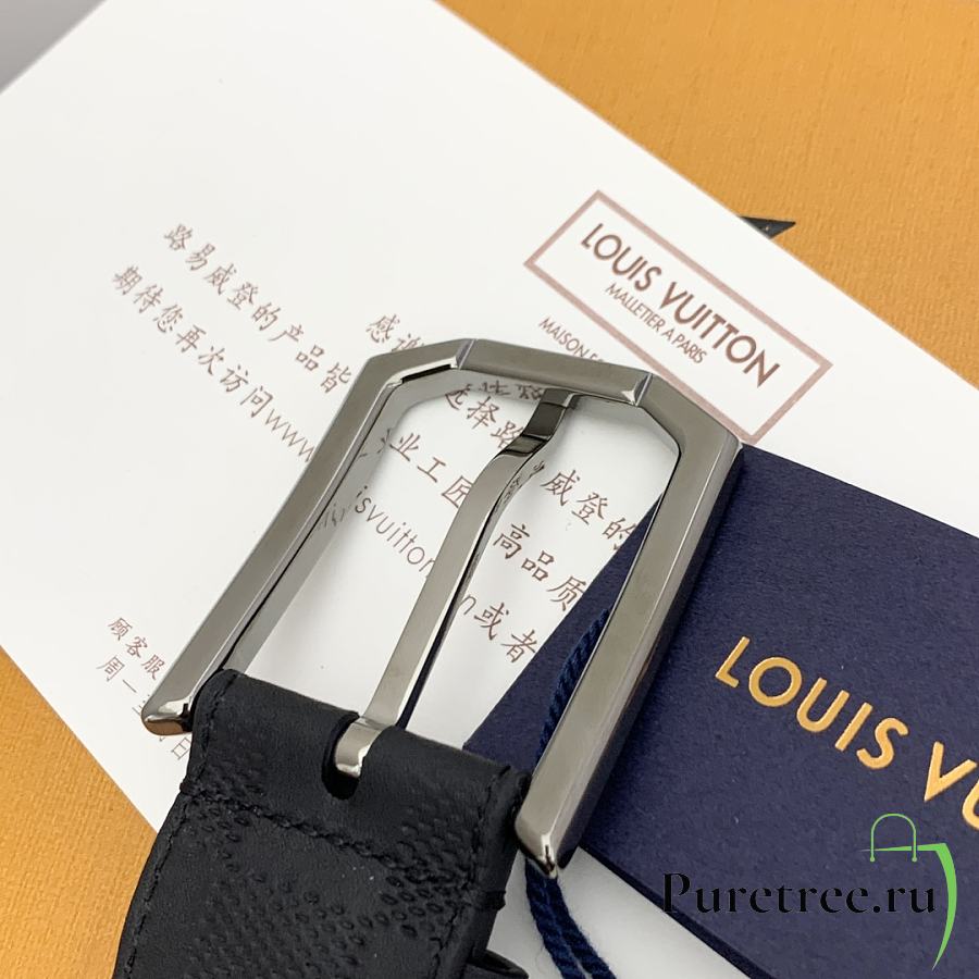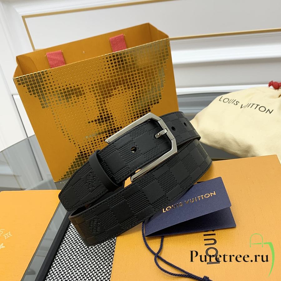 LOUIS VUITTON | Damier Heritage belt grain leather silver hardware 3.5 cm in black