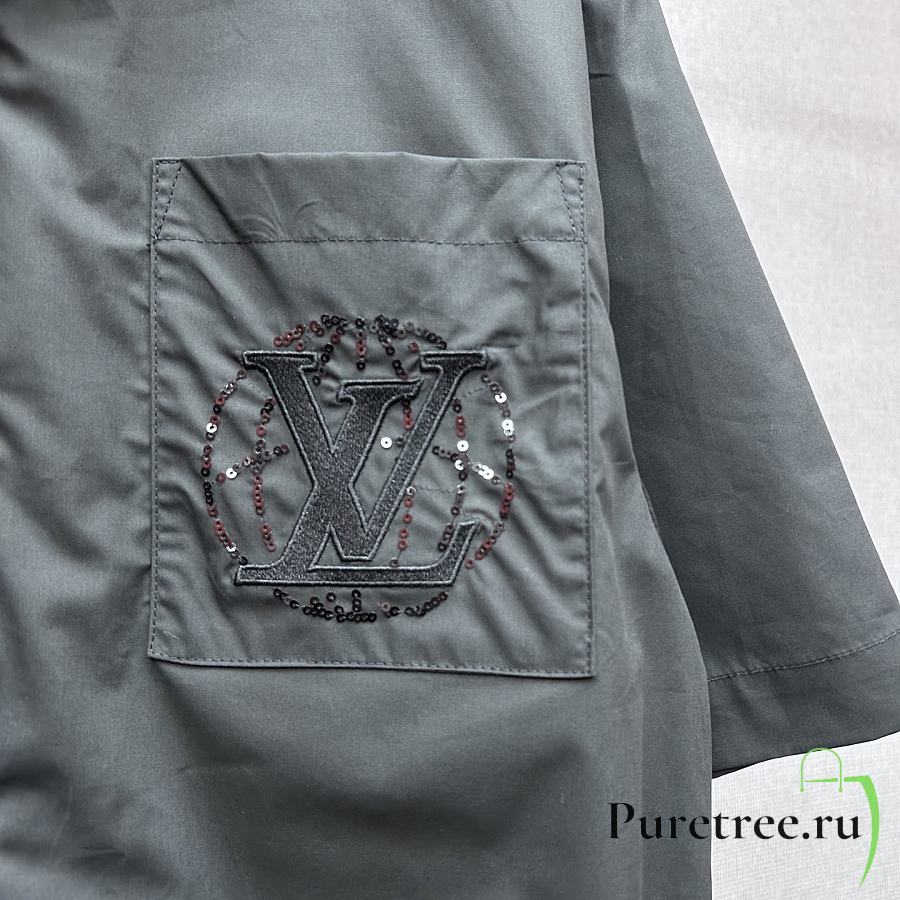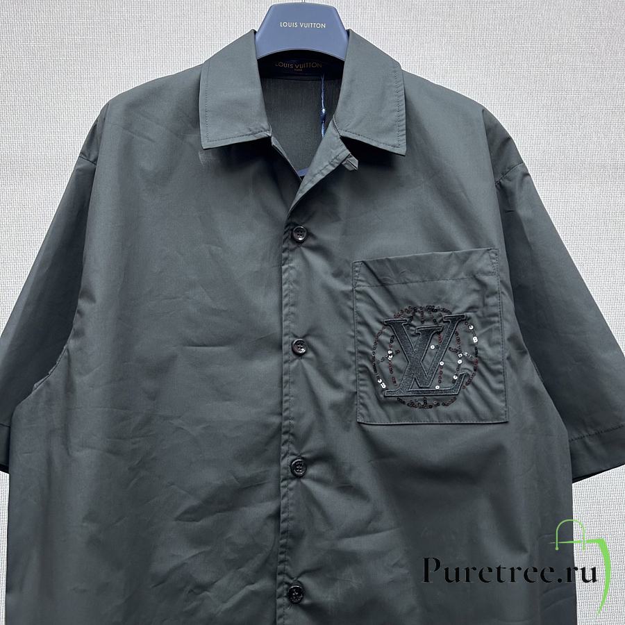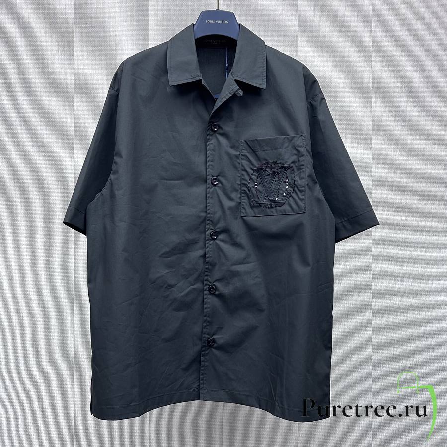 LOUIS VUITTON | Embroidered Short-Sleeved Cotton Shirt Black