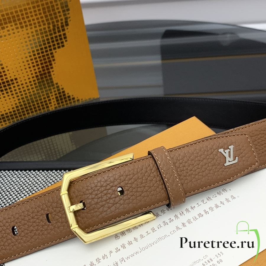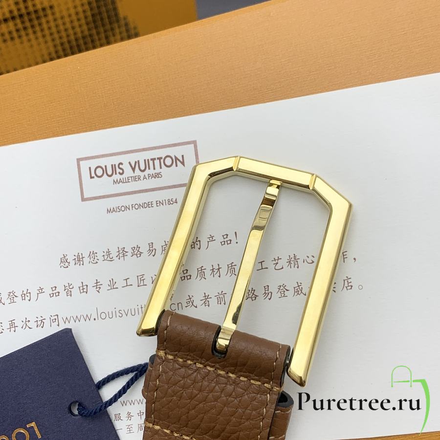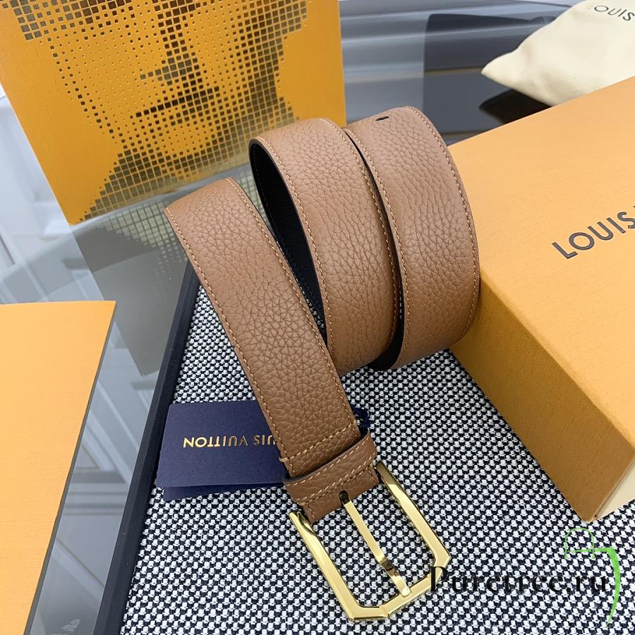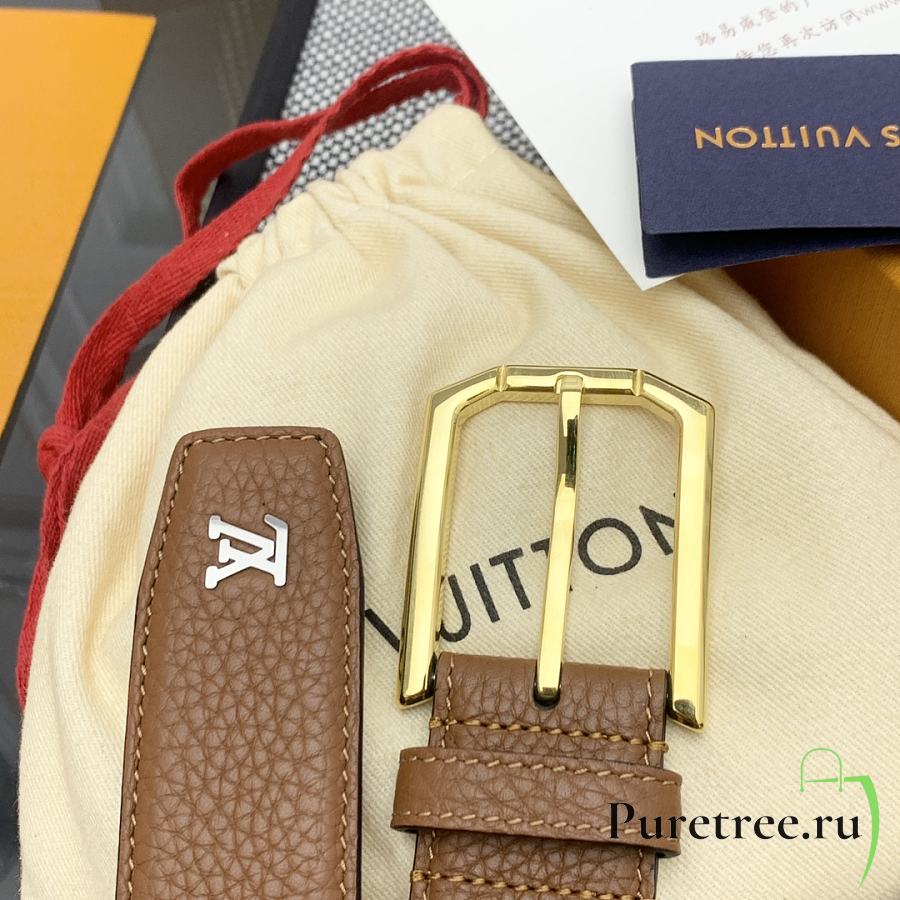 LOUIS VUITTON | Heritage belt grain leather gold hardware 3.5 cm in brown