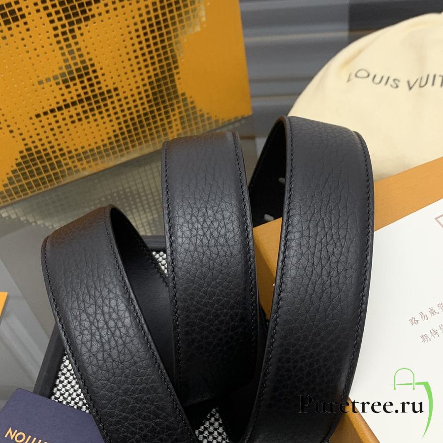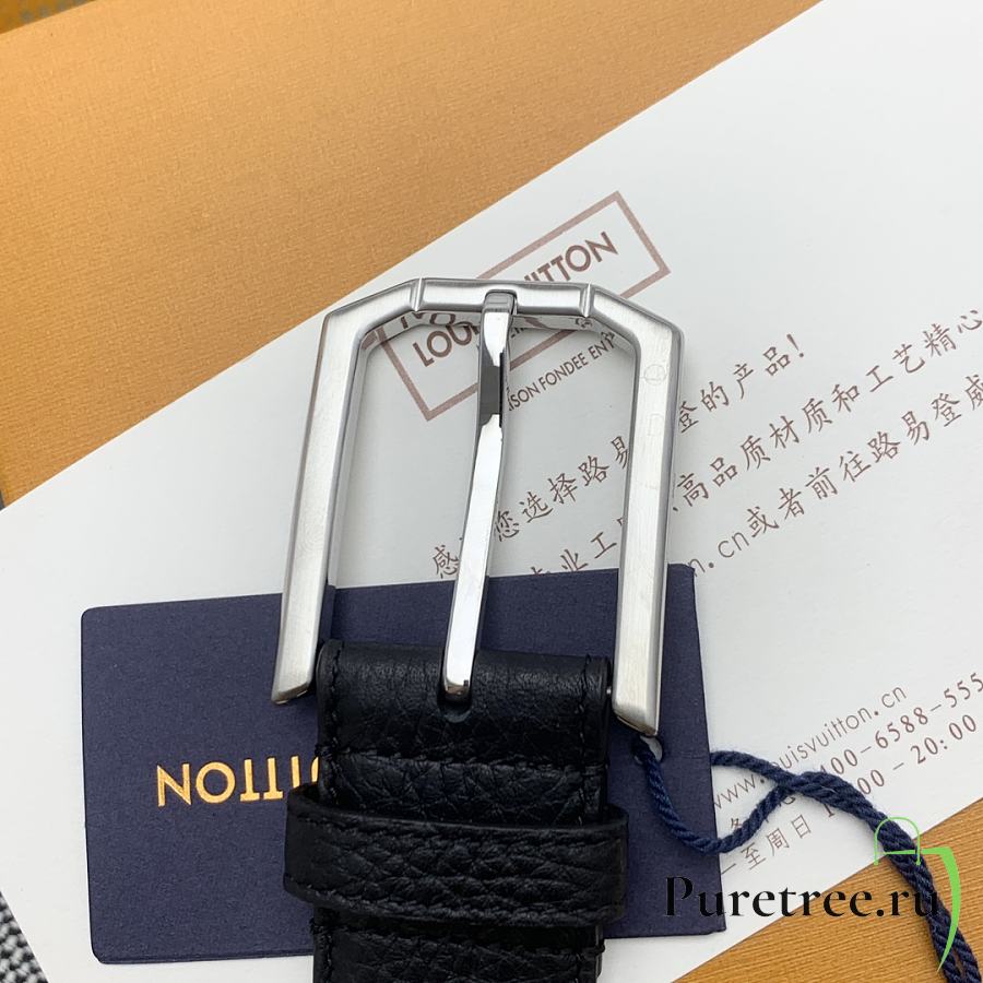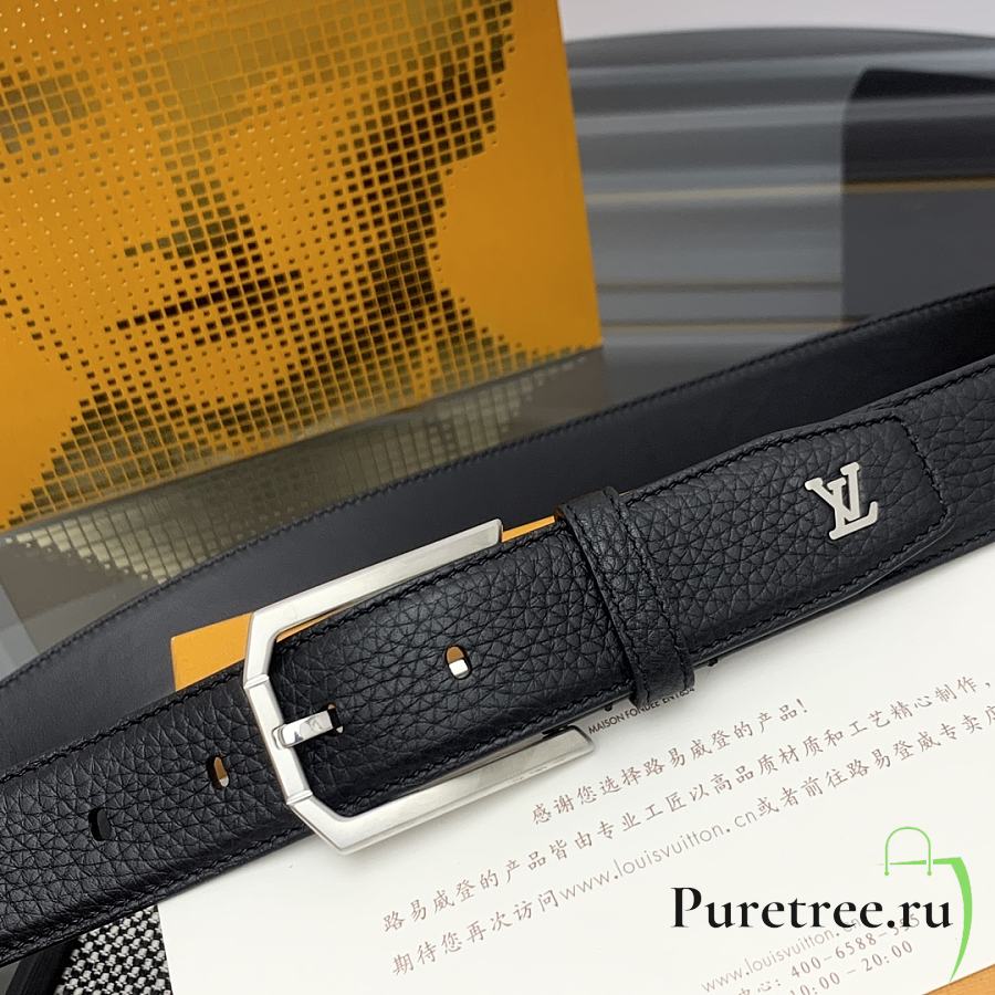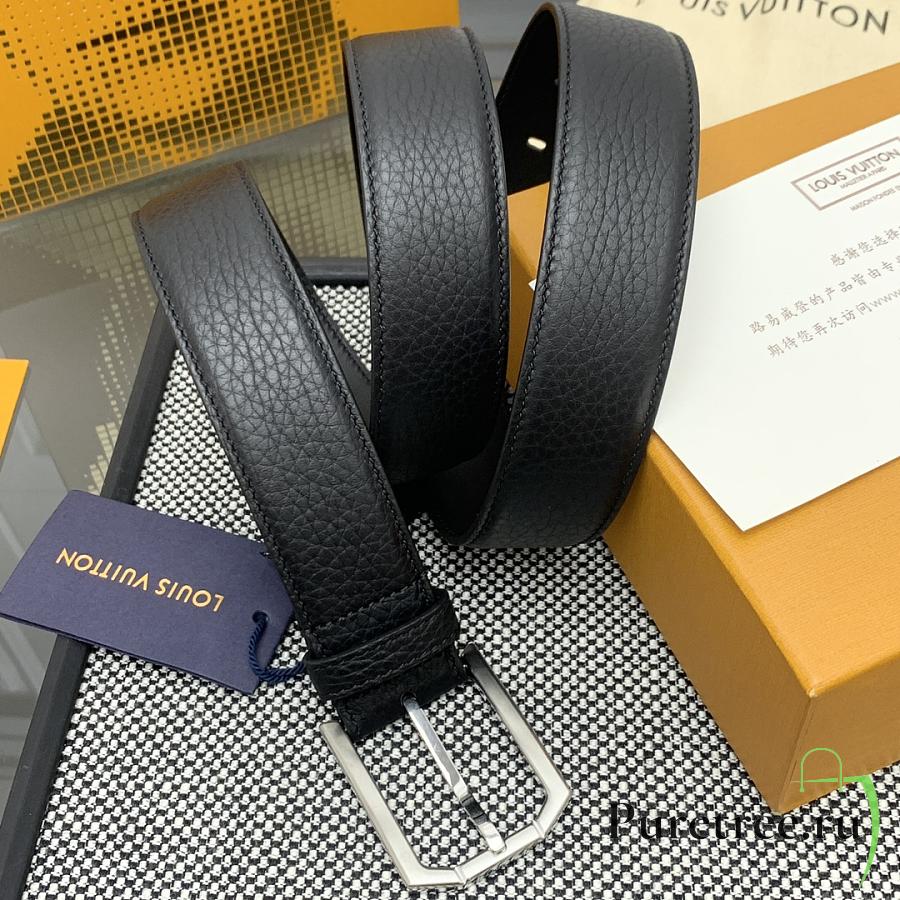 LOUIS VUITTON | Heritage belt grain leather silver hardware 3.5 cm in black