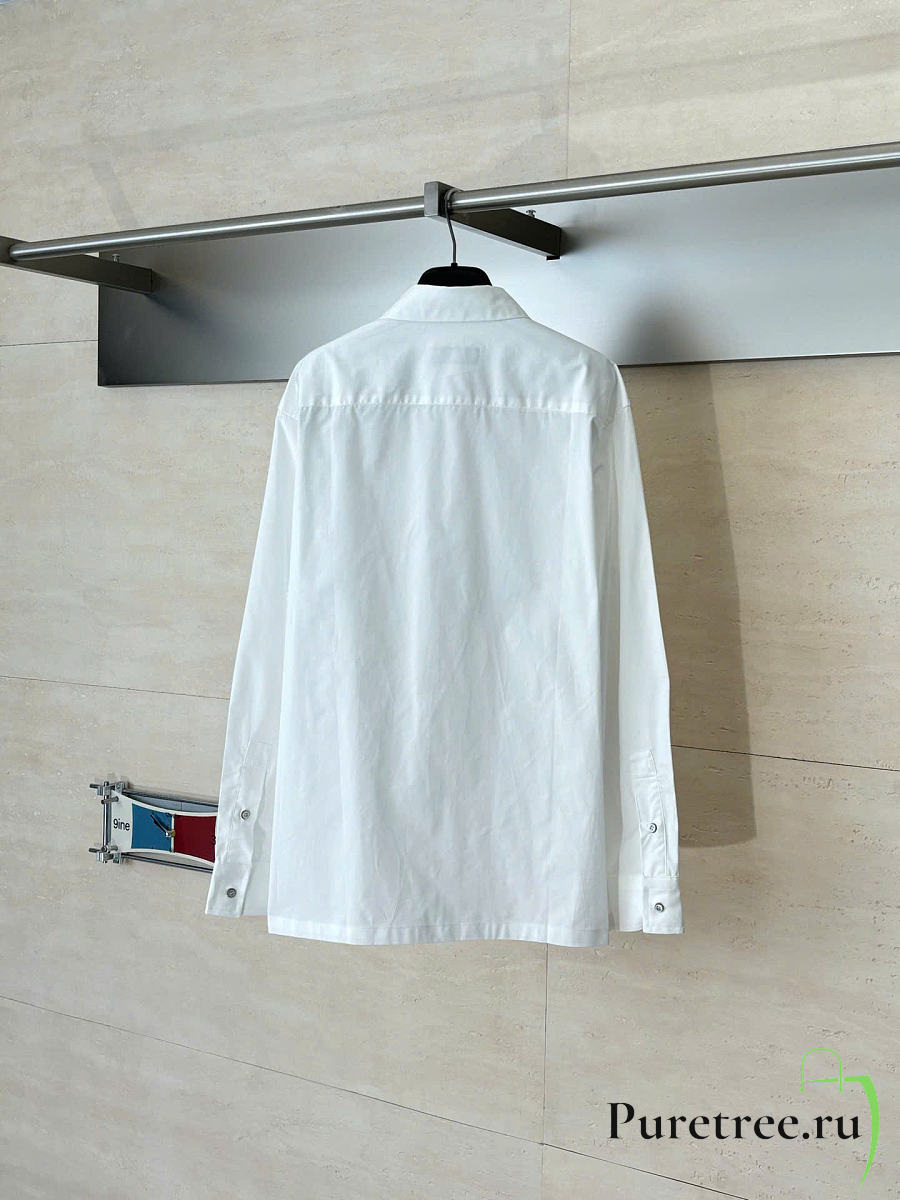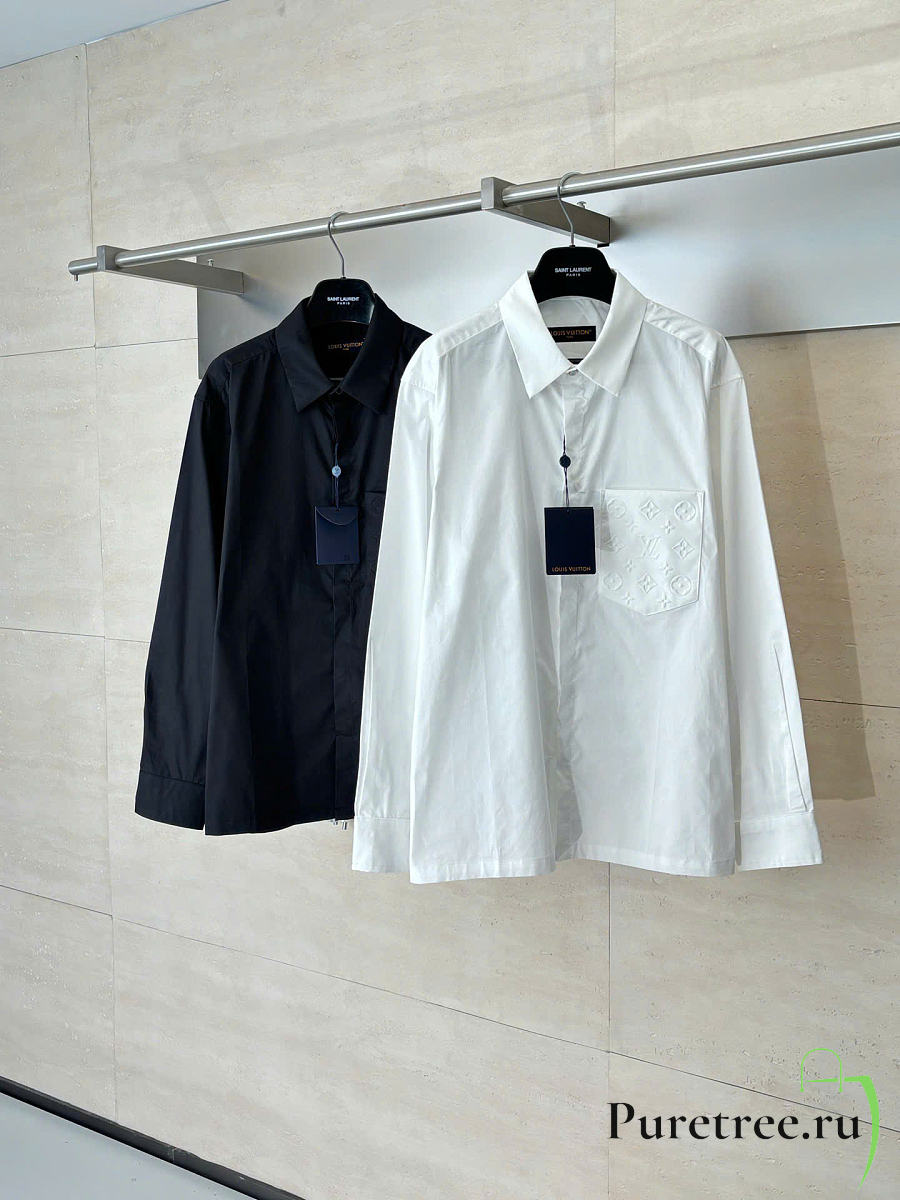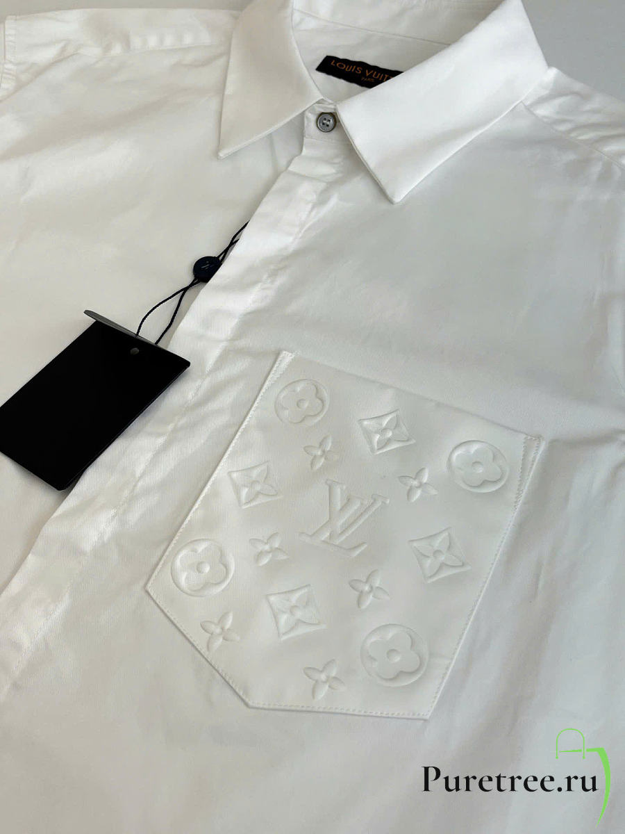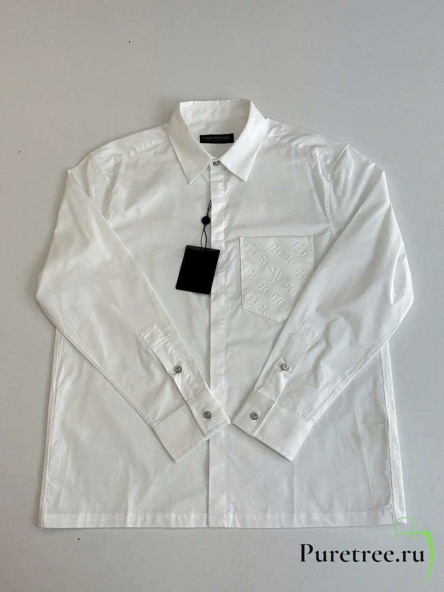 LOUIS VUITTON | Monogram Embossed Pocket Collar Long-Sleeve Shirt White