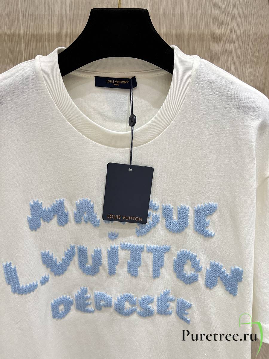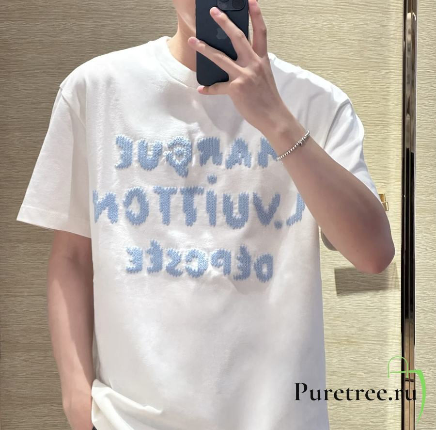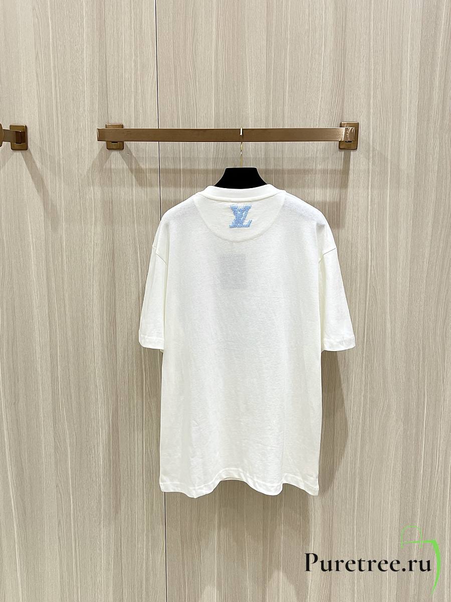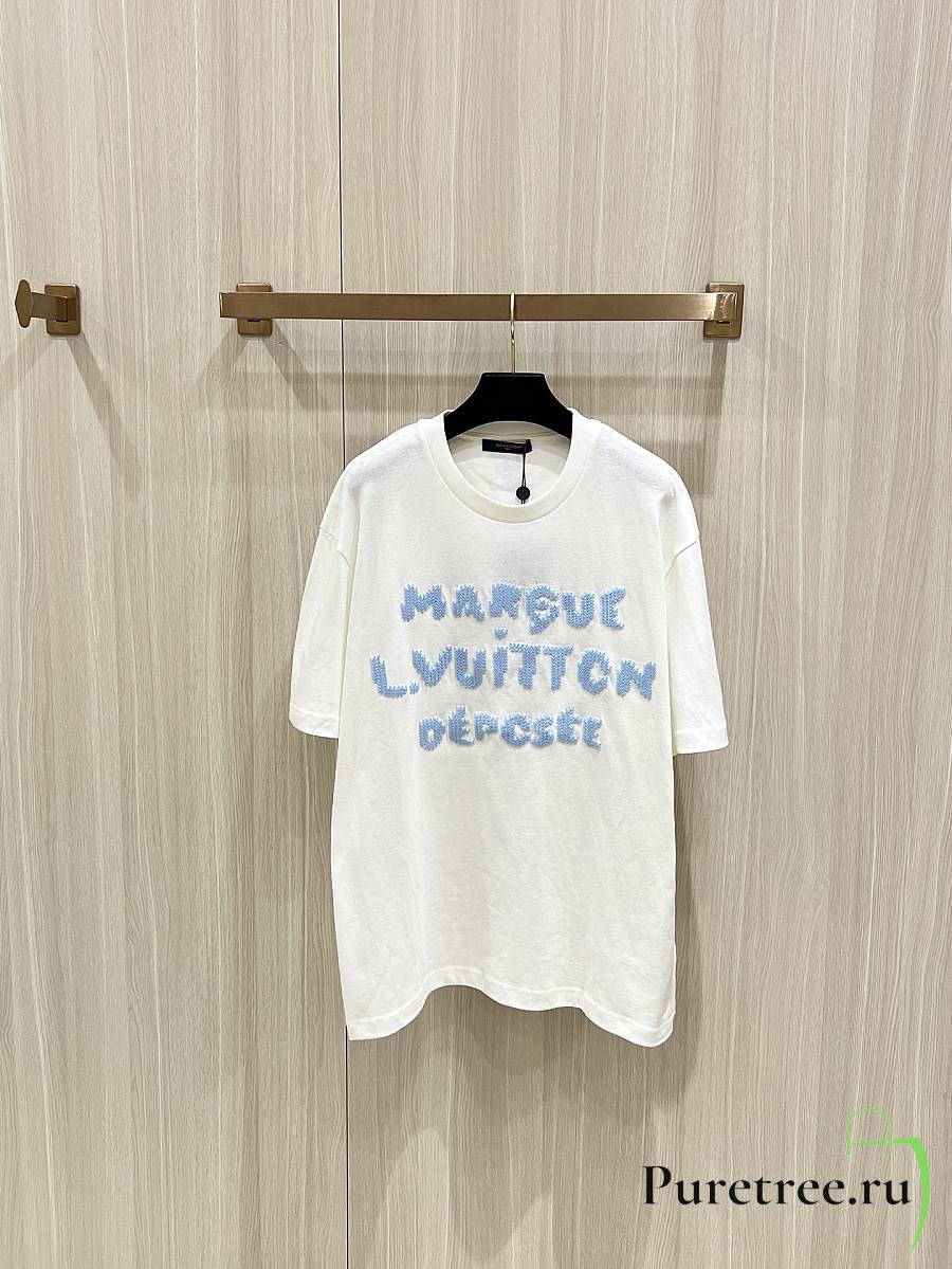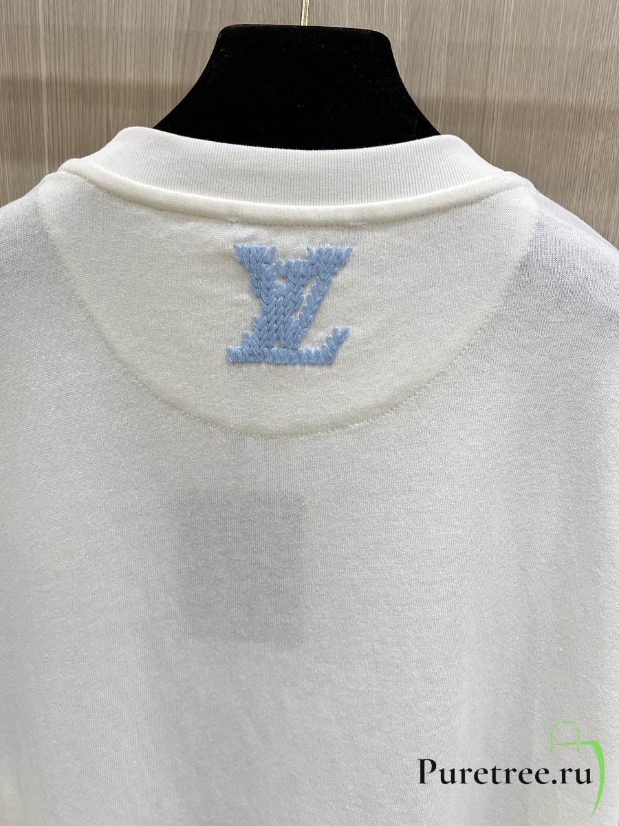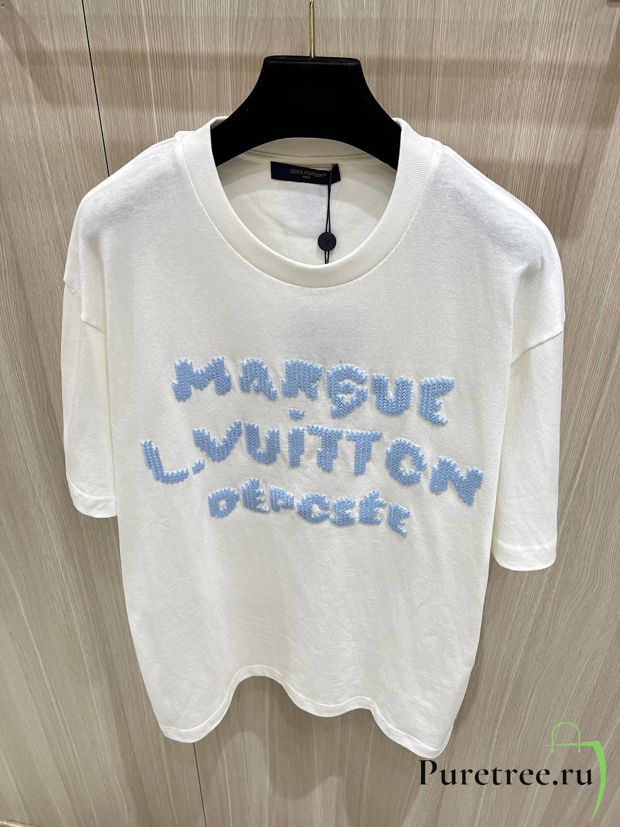 LOUIS VUITTON | white short-sleeved embroidered wool T-shirt