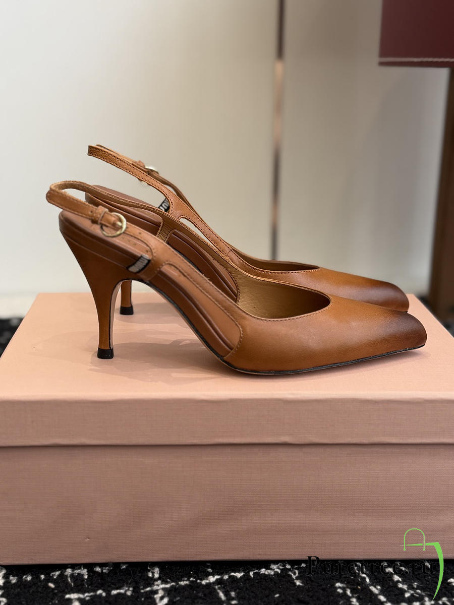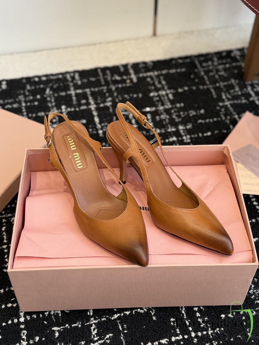 MIUMIU | Nordstrom Waxed Calfskin Slingback Pump Caramel Brown