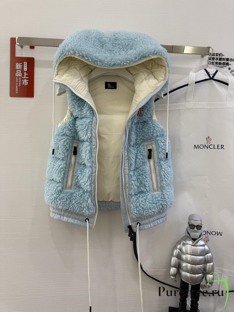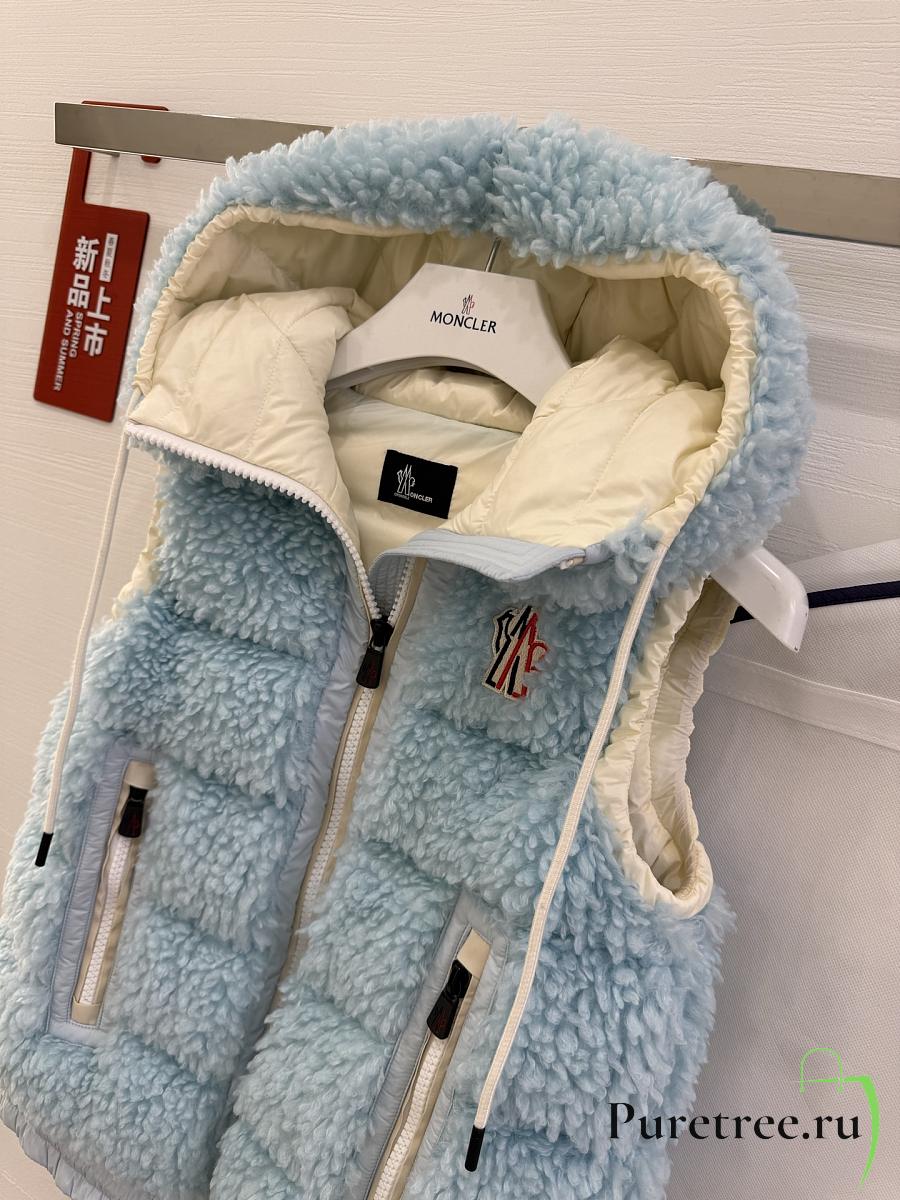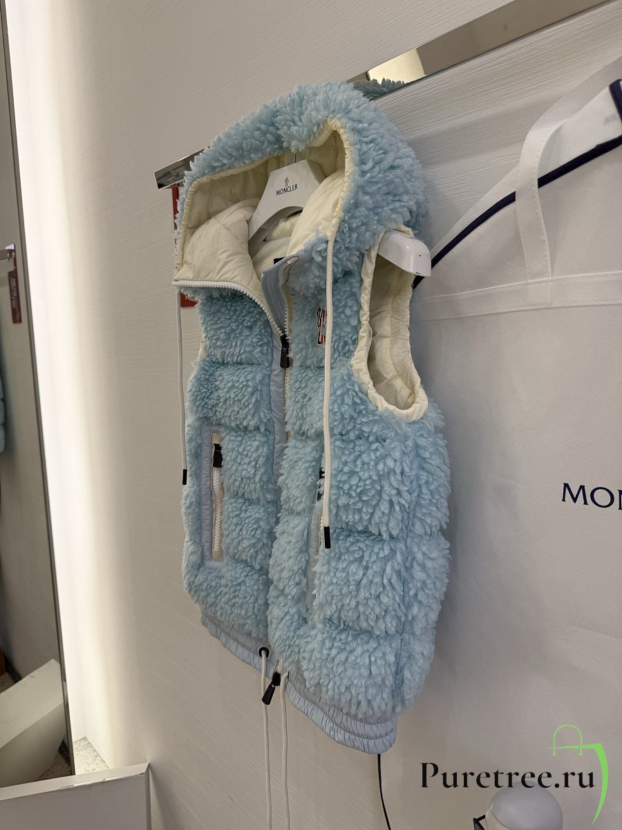 MONCLER | Classic Teddy Hooded Casual Down Vest In Blue