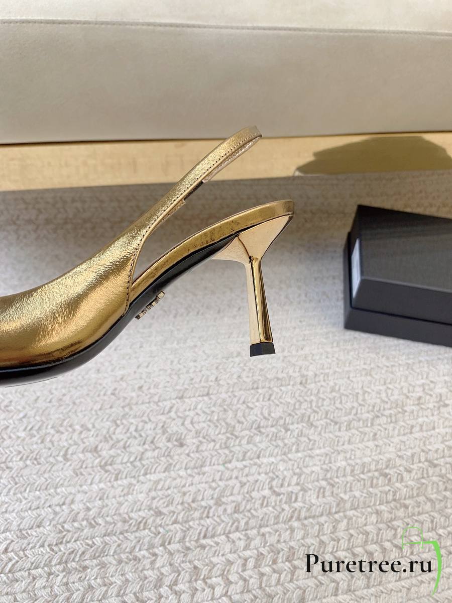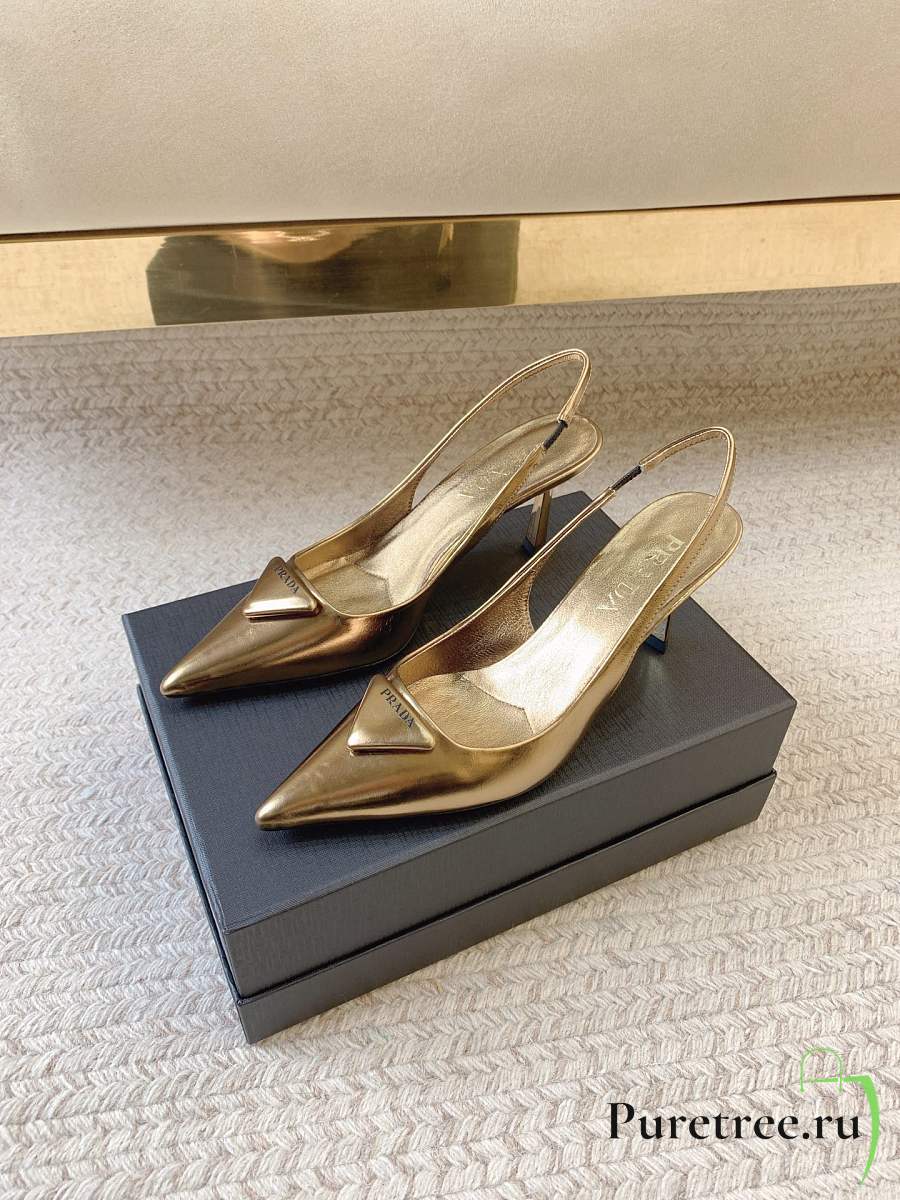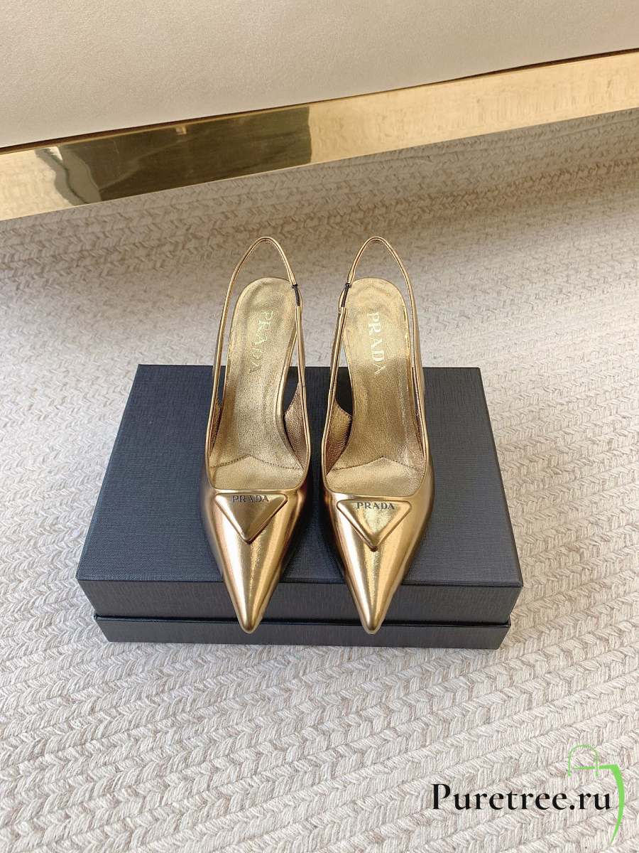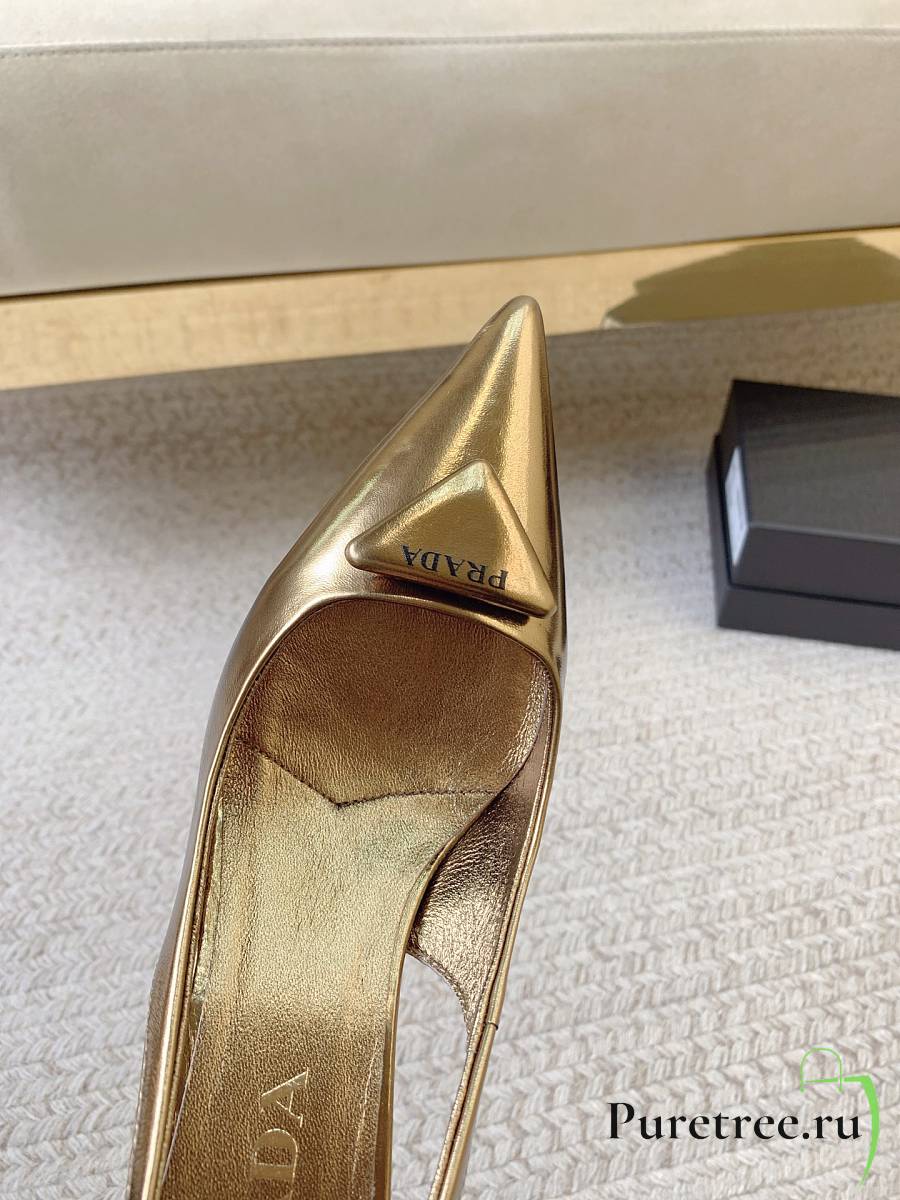 PRADA | Black Brushed Leather Slingback Pumps Gold