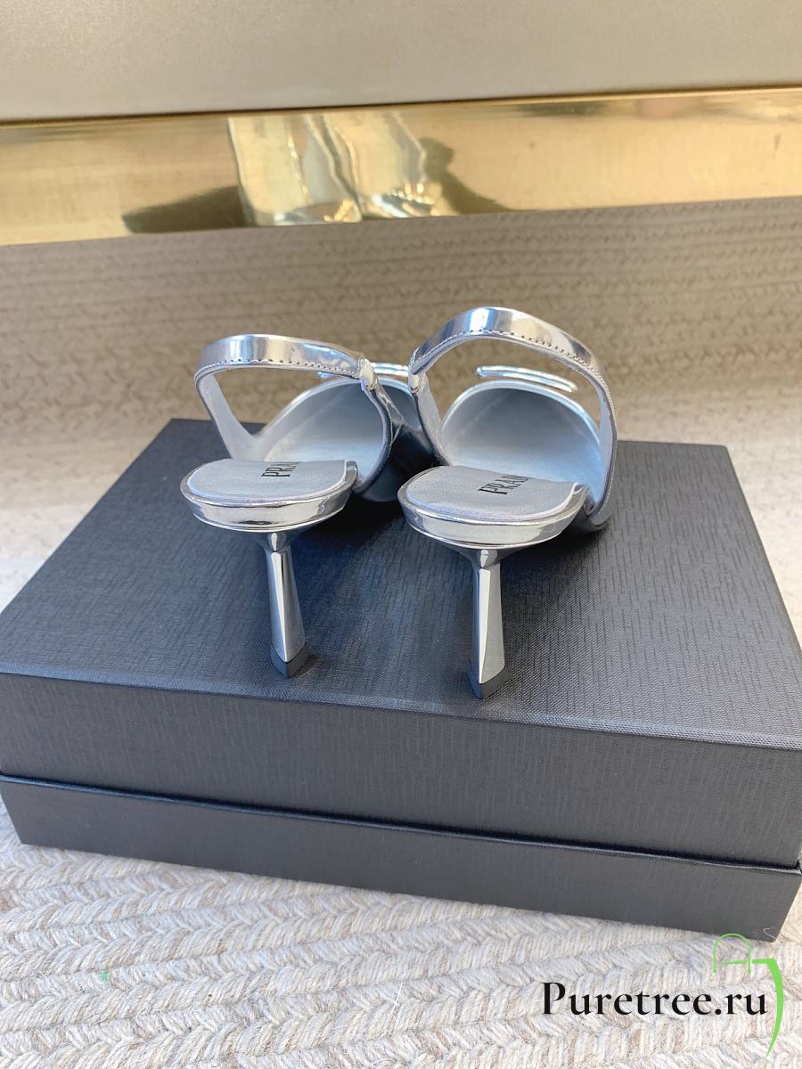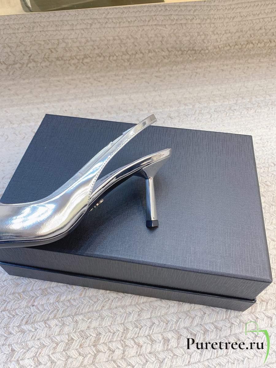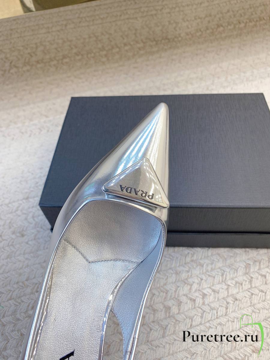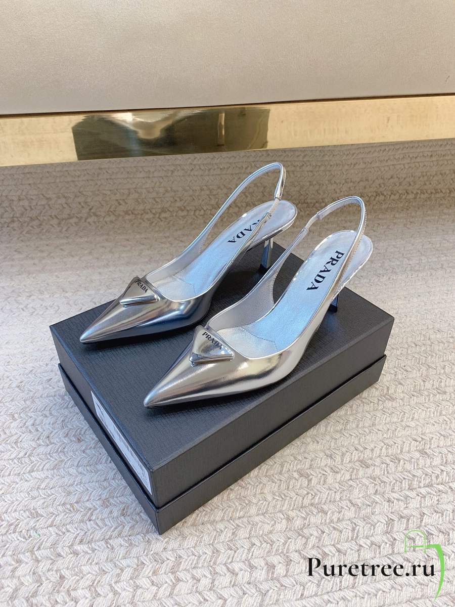 PRADA | Black Brushed Leather Slingback Pumps Silver