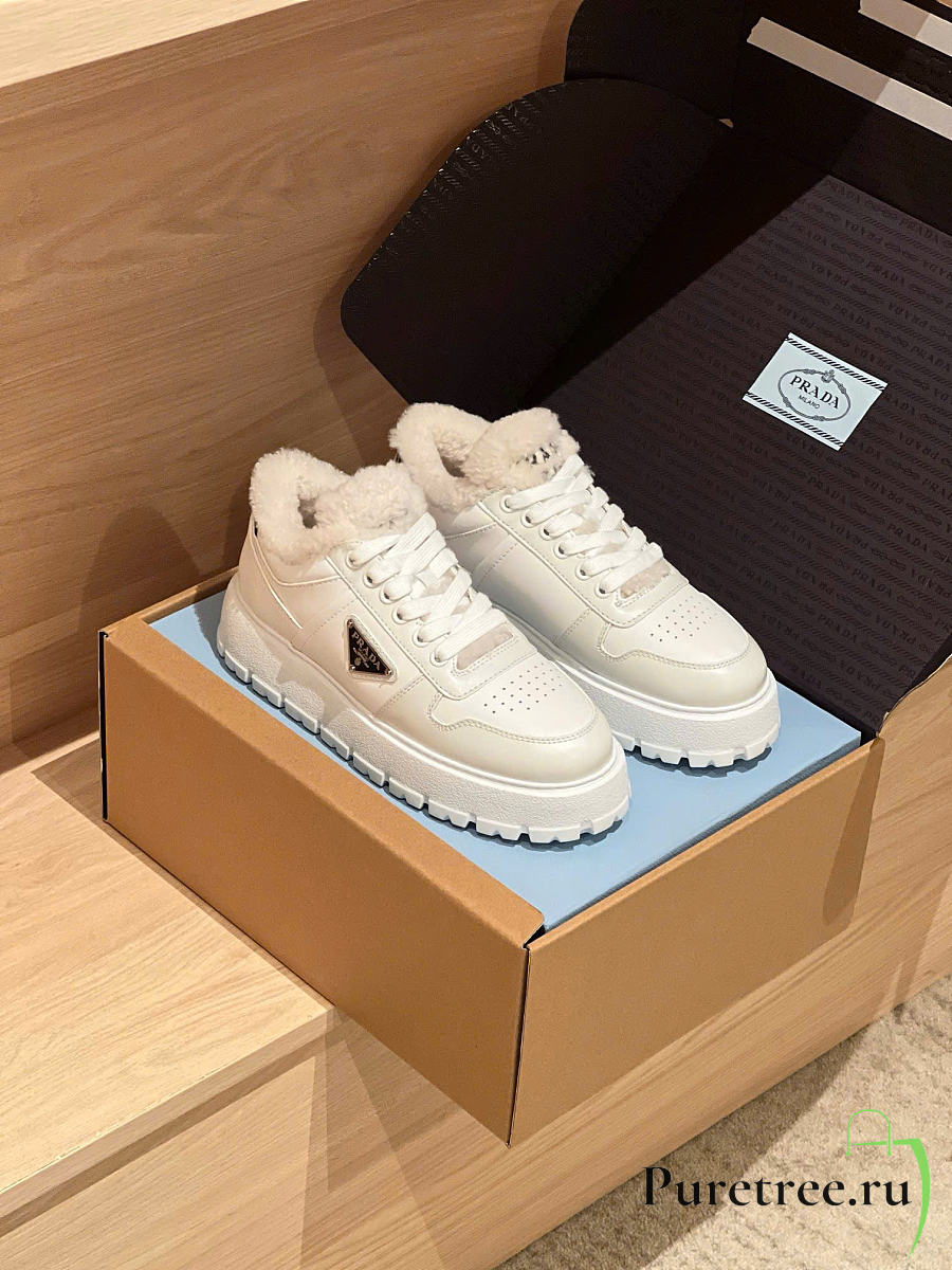 Prada leather x shearling sneakers