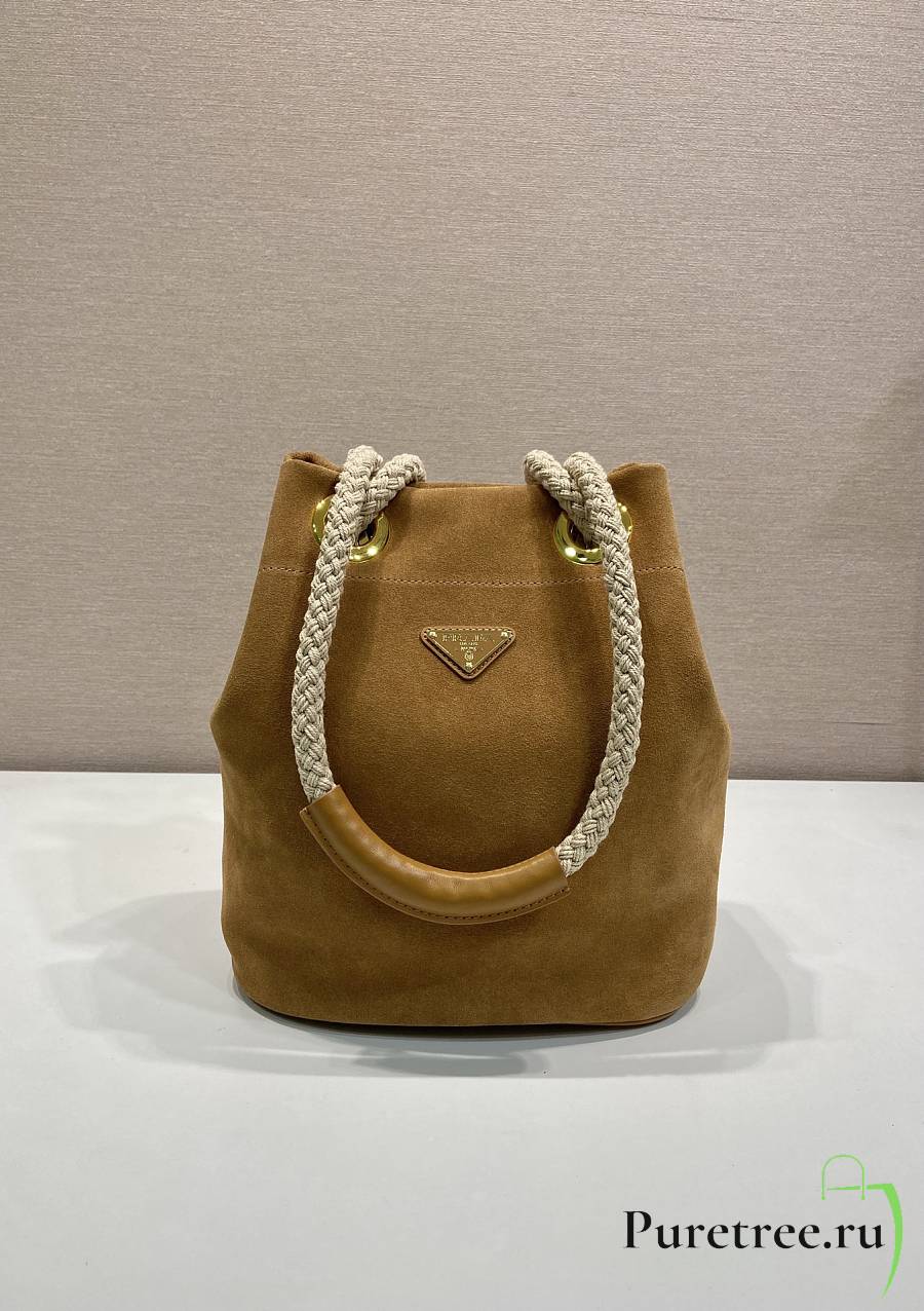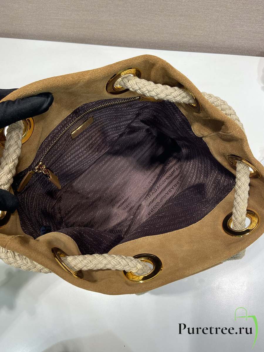 PRADA | Mariner small suede bucket bag Cinnamon