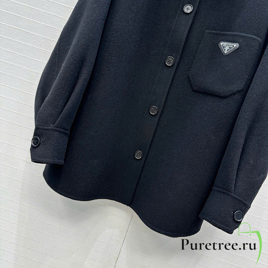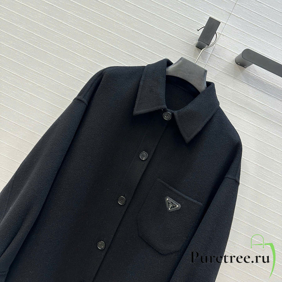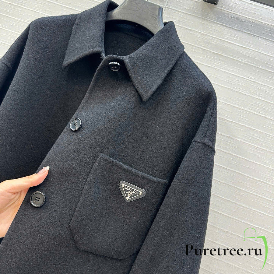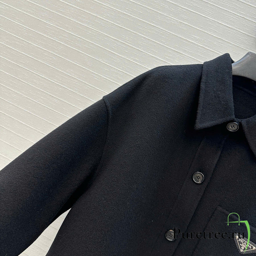 Prada Solid colour single-breasted logo decorated lon Jacket Black