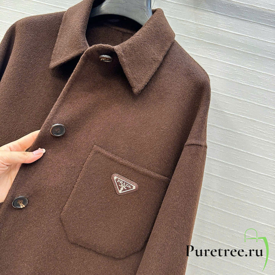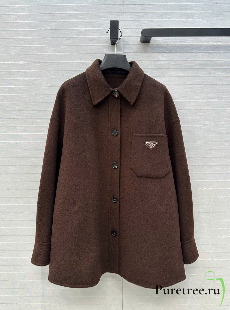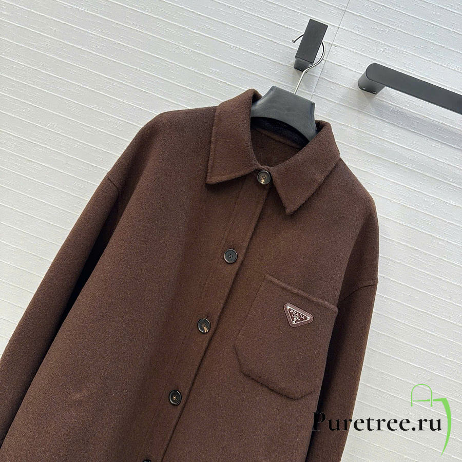 Prada Solid colour single-breasted logo decorated lon Jacket Brown
