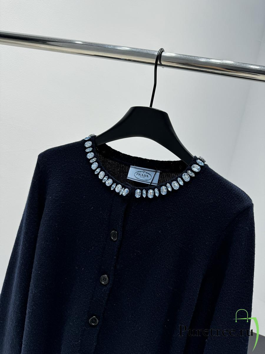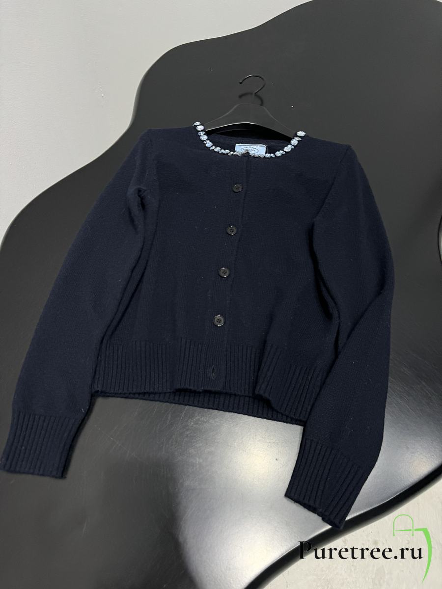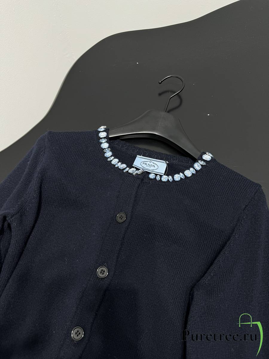 PRADA | Wool Rhinestone Crew Neck Cardigan Black