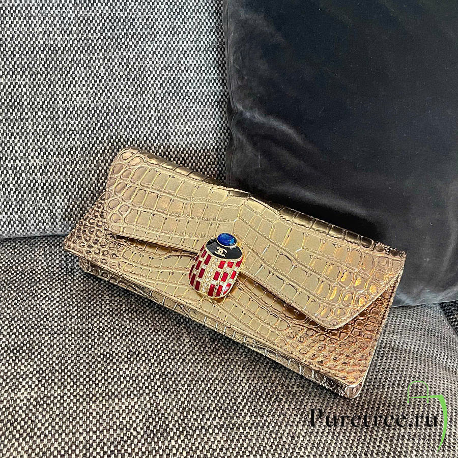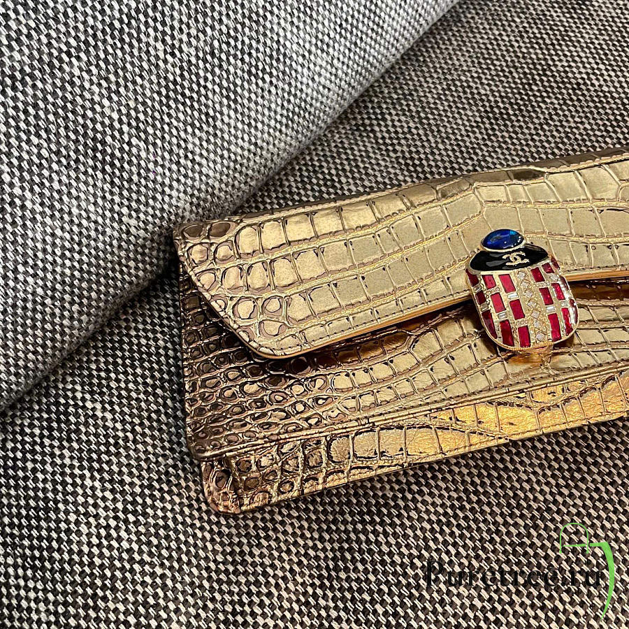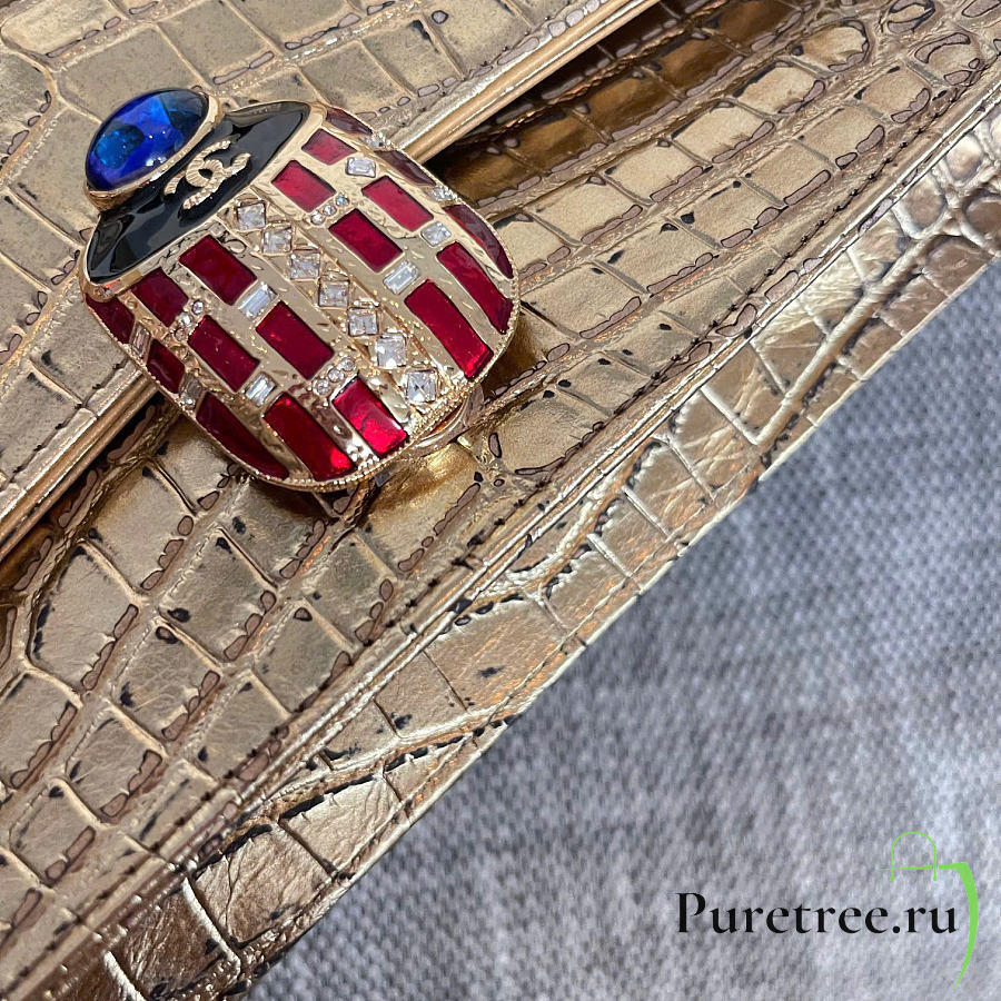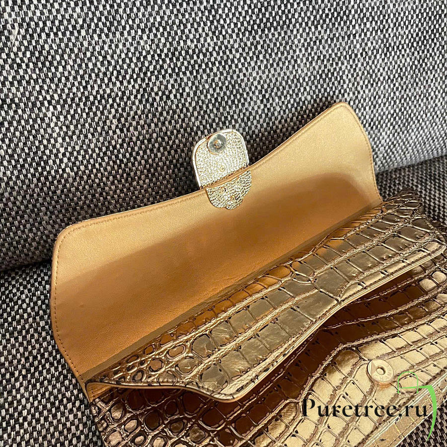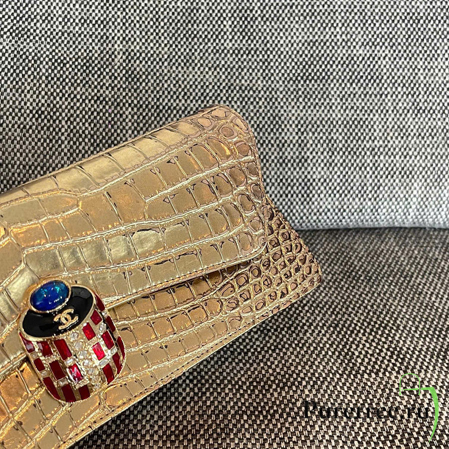 Rare Chanel 19A Crocodile Embossed Gold
