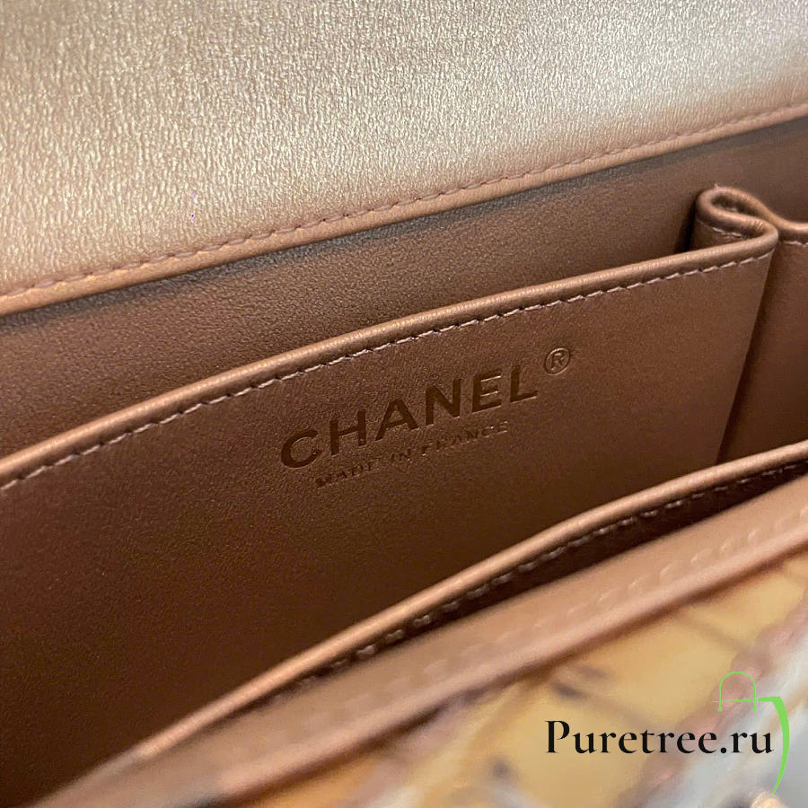 Chanel 19 Handbag Brown Golden & Metal Tone Small | AS1160
