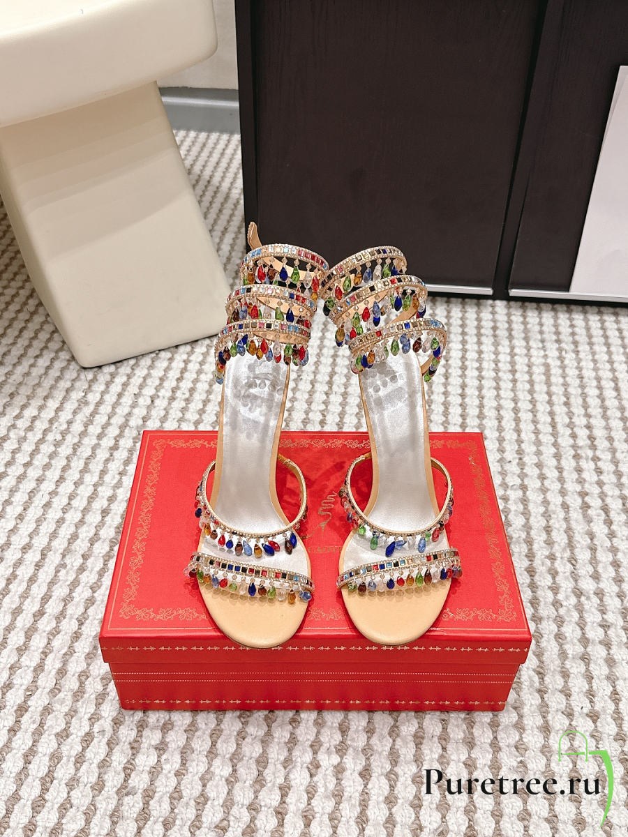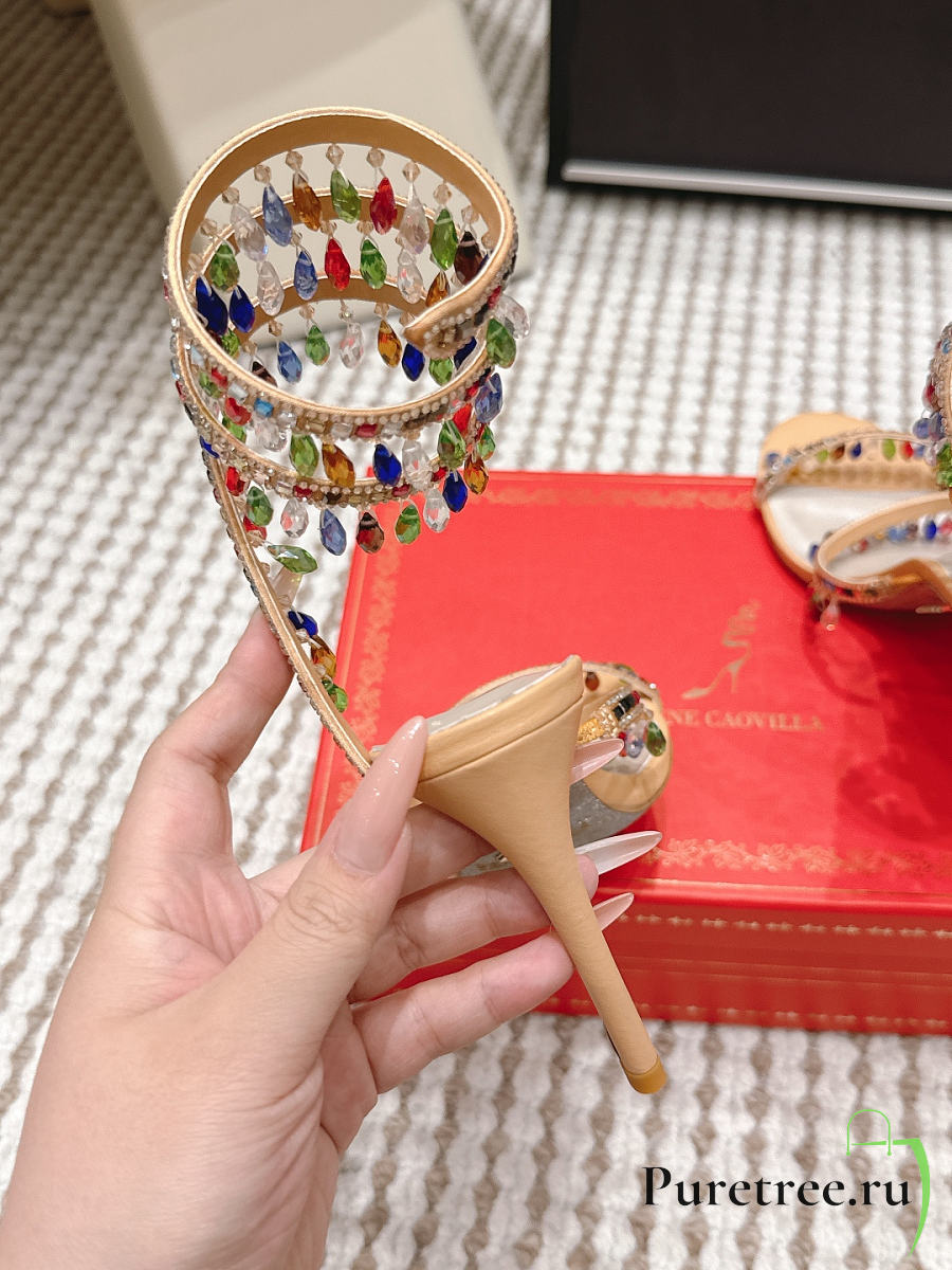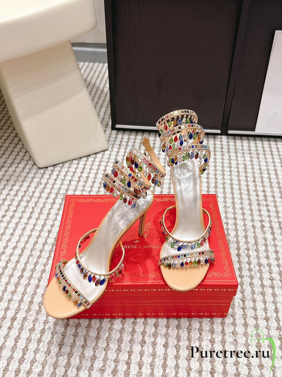 René Caovilla Chandelier Nude Rainbow Crystal Sandal 7.5 cm