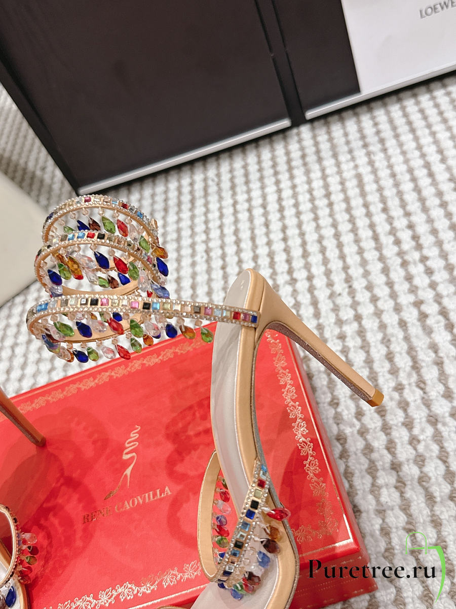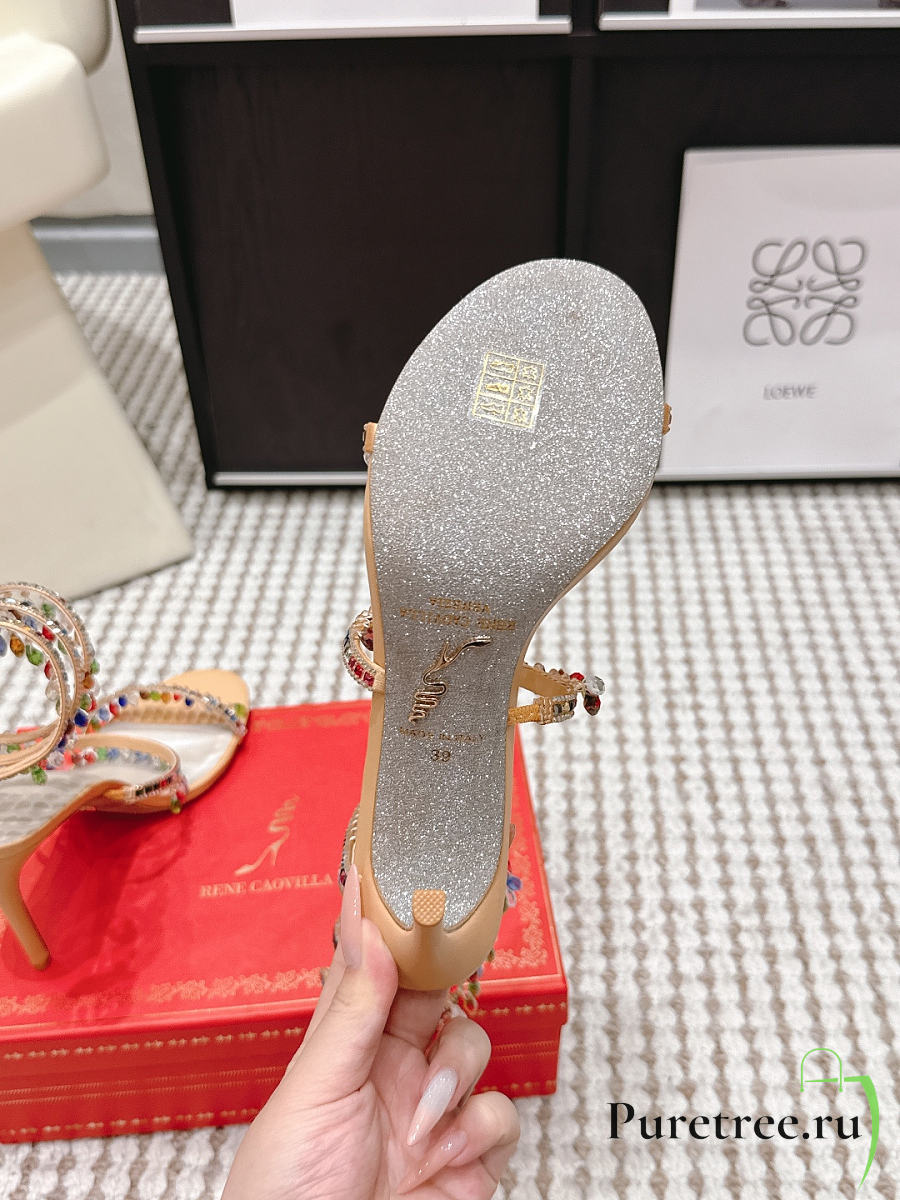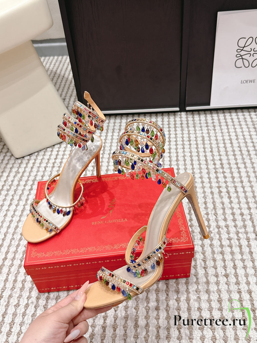 René Caovilla Chandelier Nude Rainbow Crystal Sandal 7.5 cm