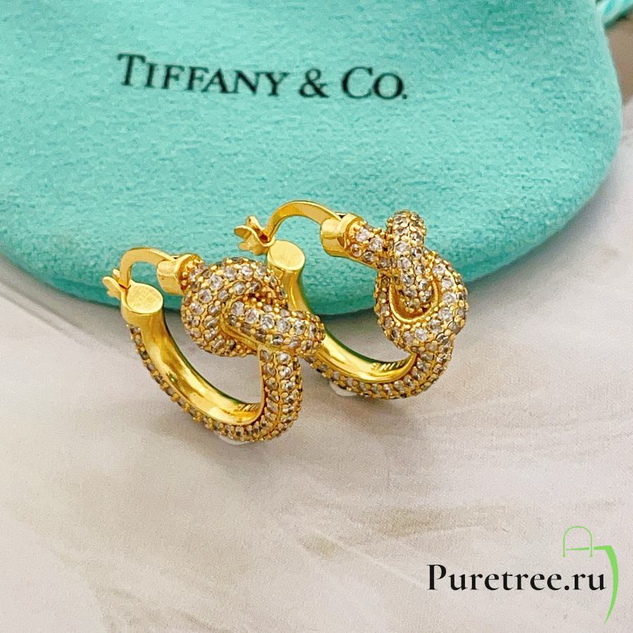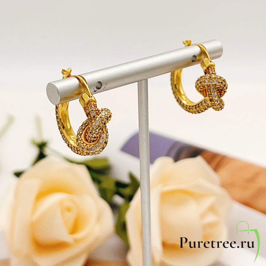 Tiffany Knot Pavé Hoop Earrings Gold