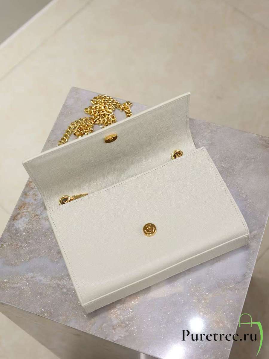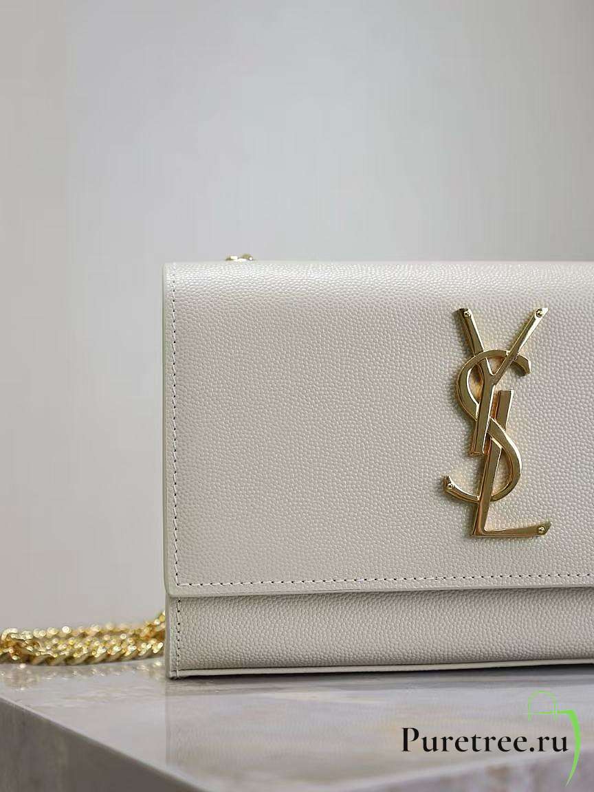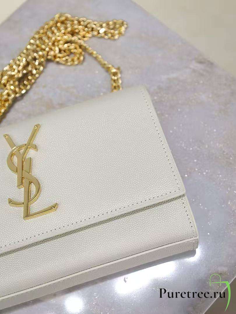 YSL Gaby Chain Pouch In Quilted White Lambskin size 13 x 9 x 3.5 cm