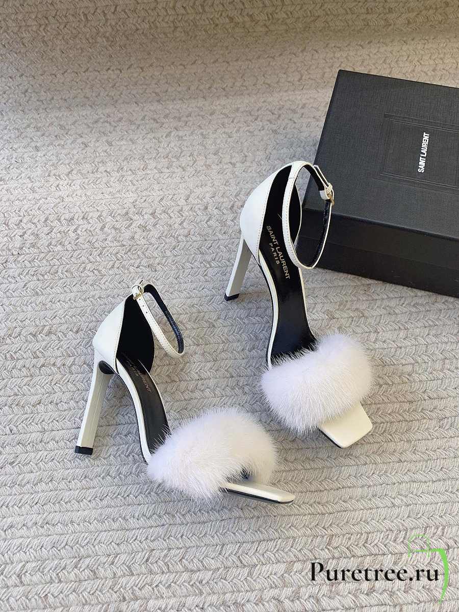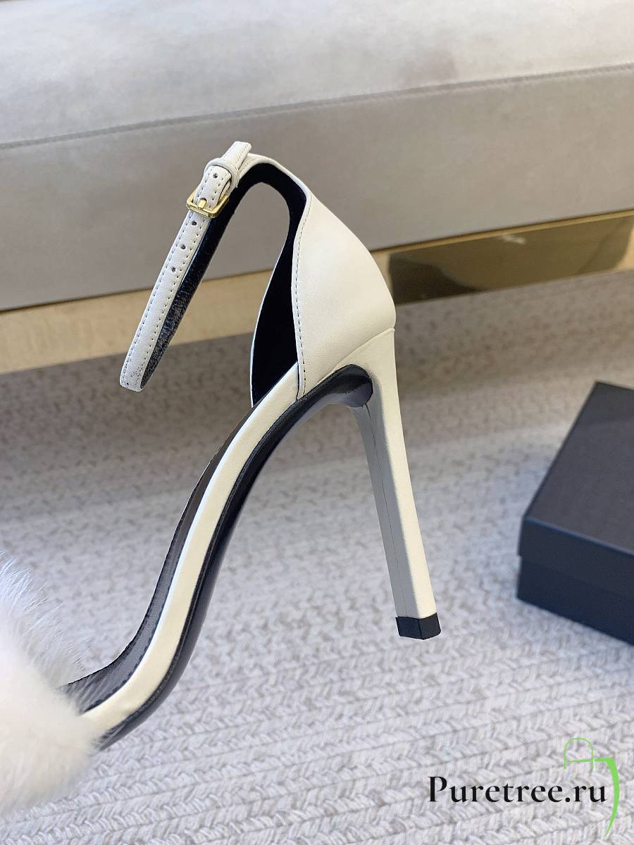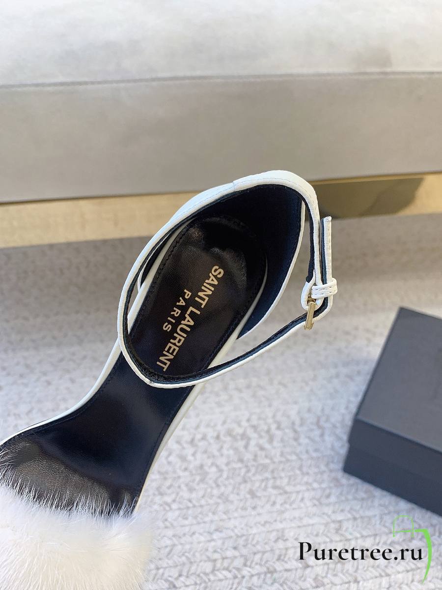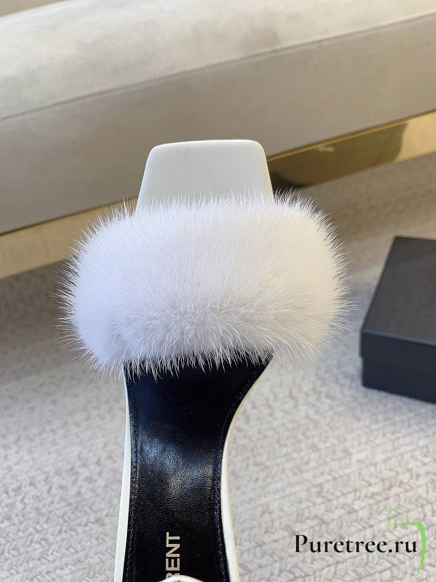YSL | Saint Laurent Roy Genuine Mink Fur Sandal White