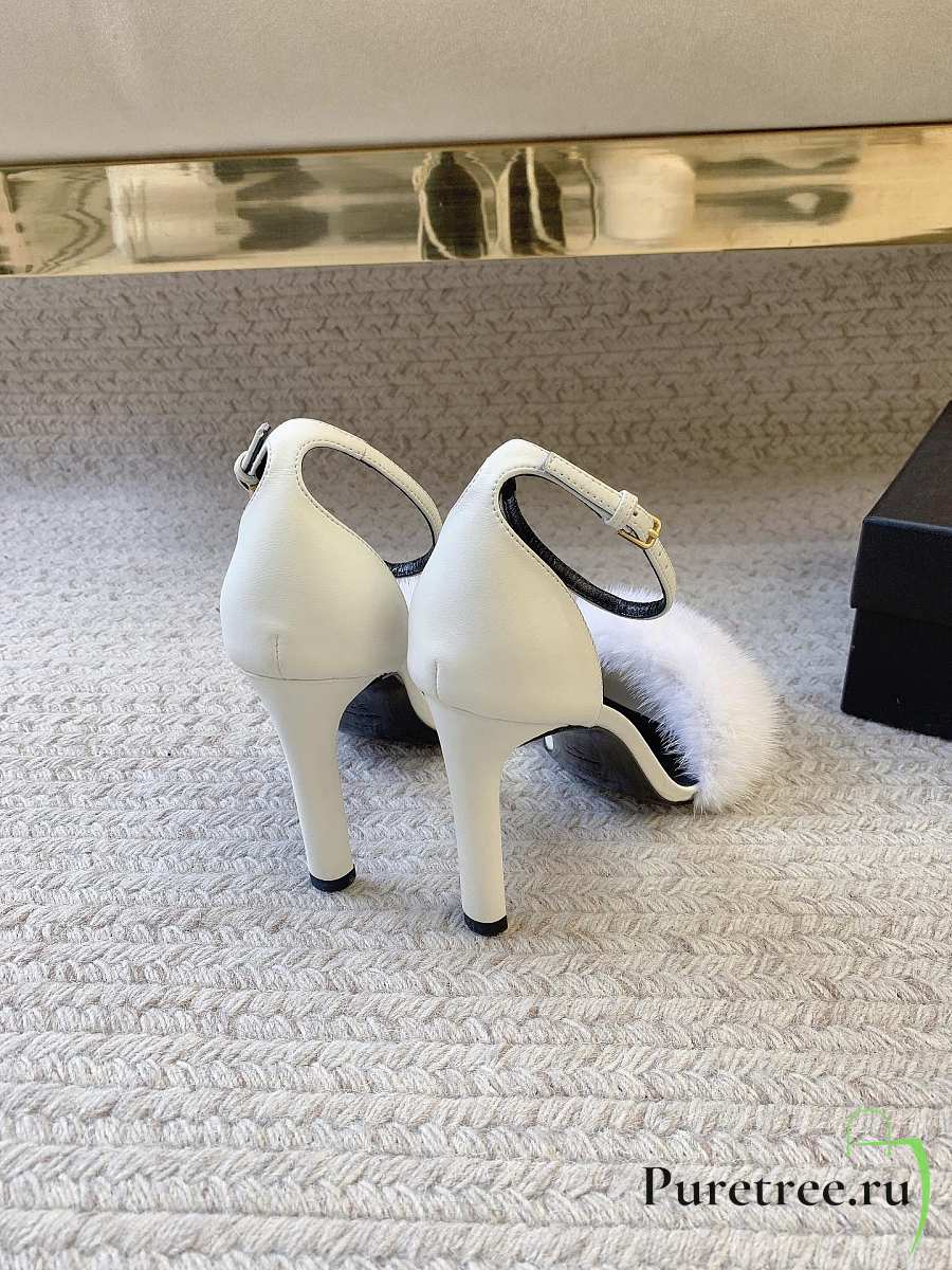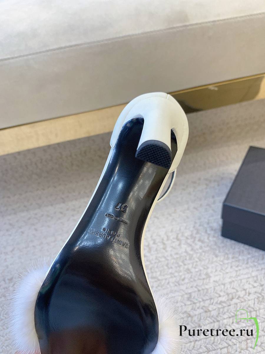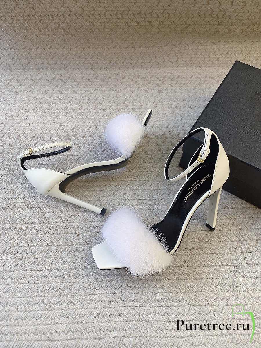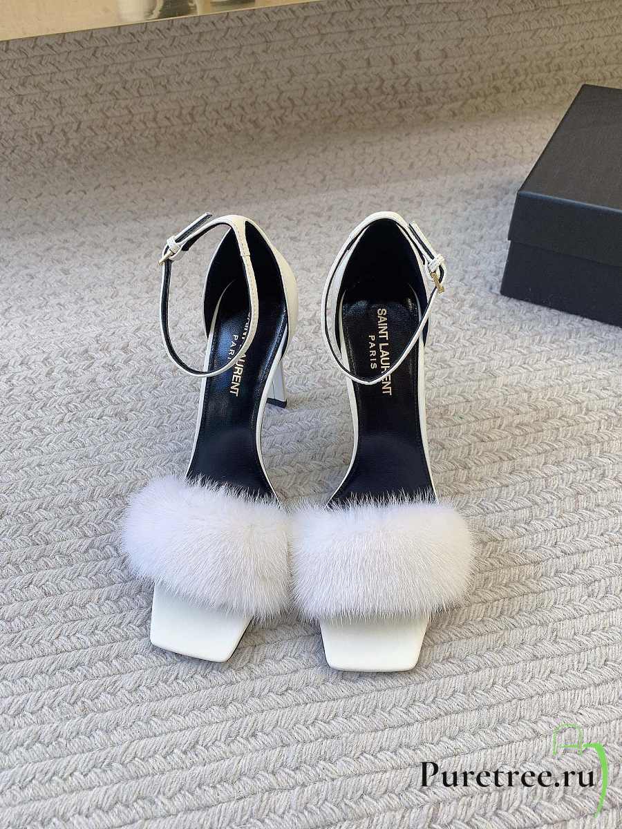 YSL | Saint Laurent Roy Genuine Mink Fur Sandal White
